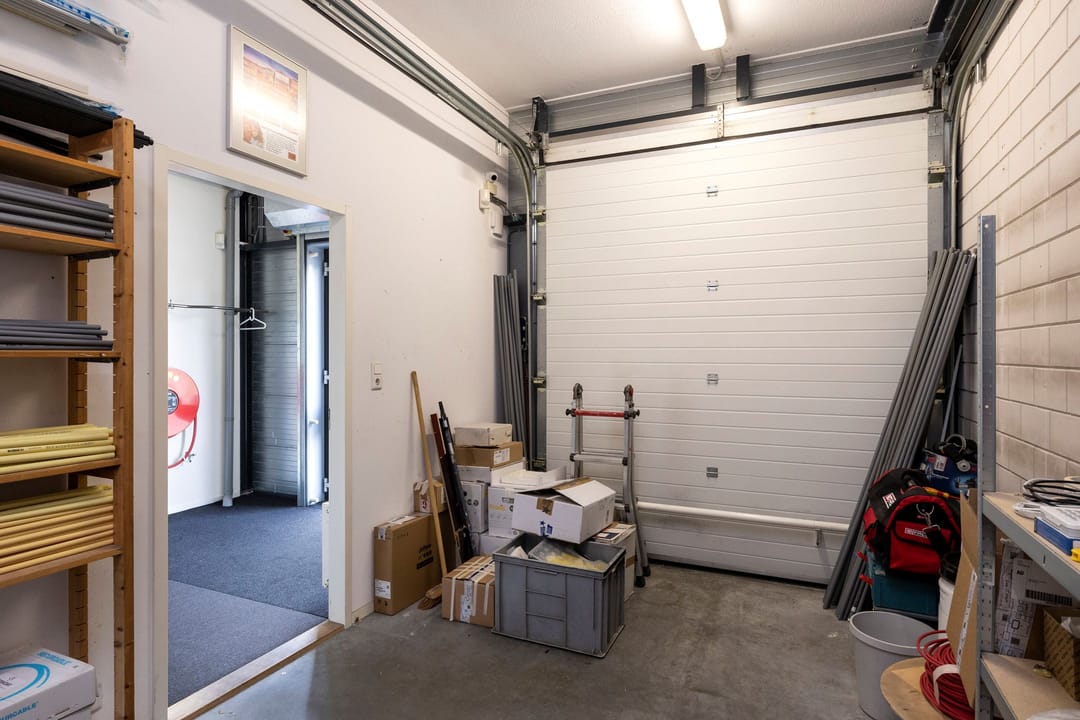 - Overheaddeuren, betonvloer, toilet, pantry en te openen ramen