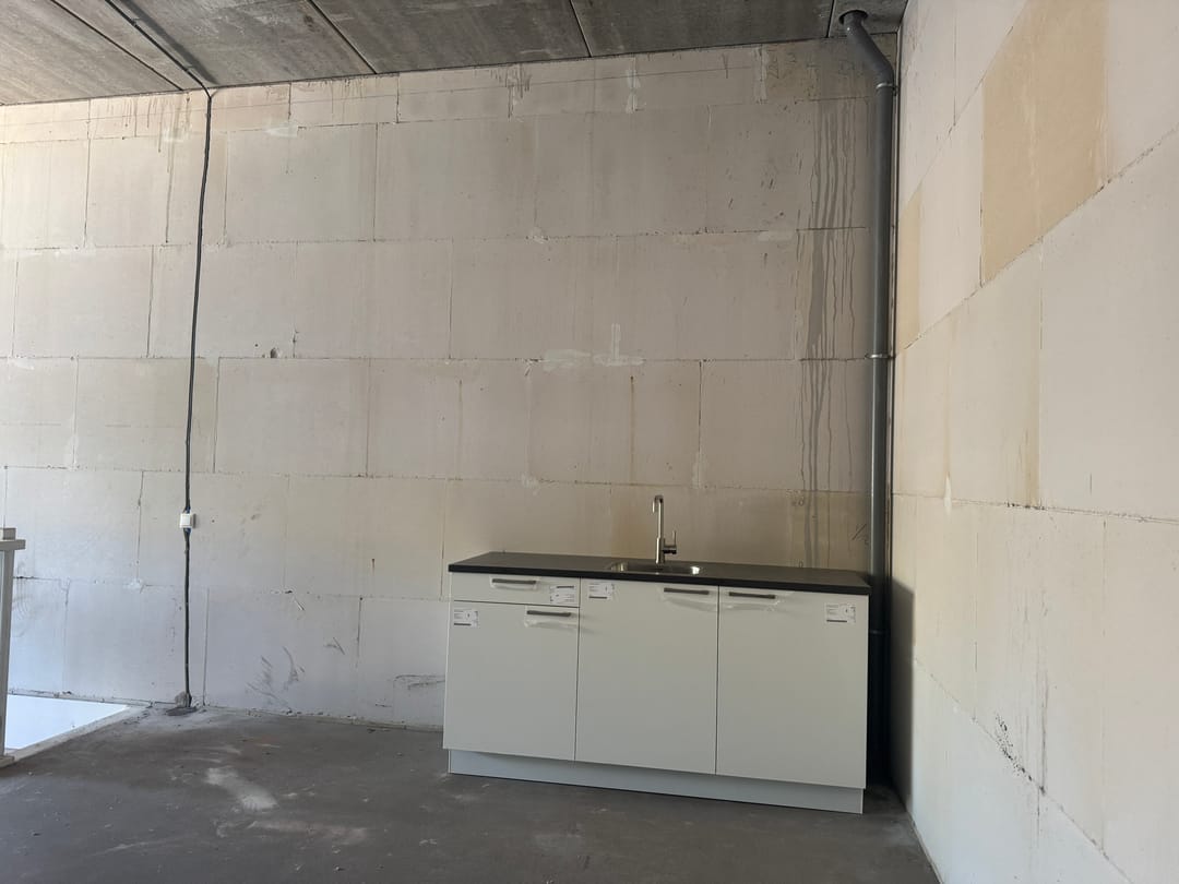 - Pantry voorzien van aansluitingen, keukenmengkraan, werkblad, inbouwspoelbak en onderkasten (standaard wit)