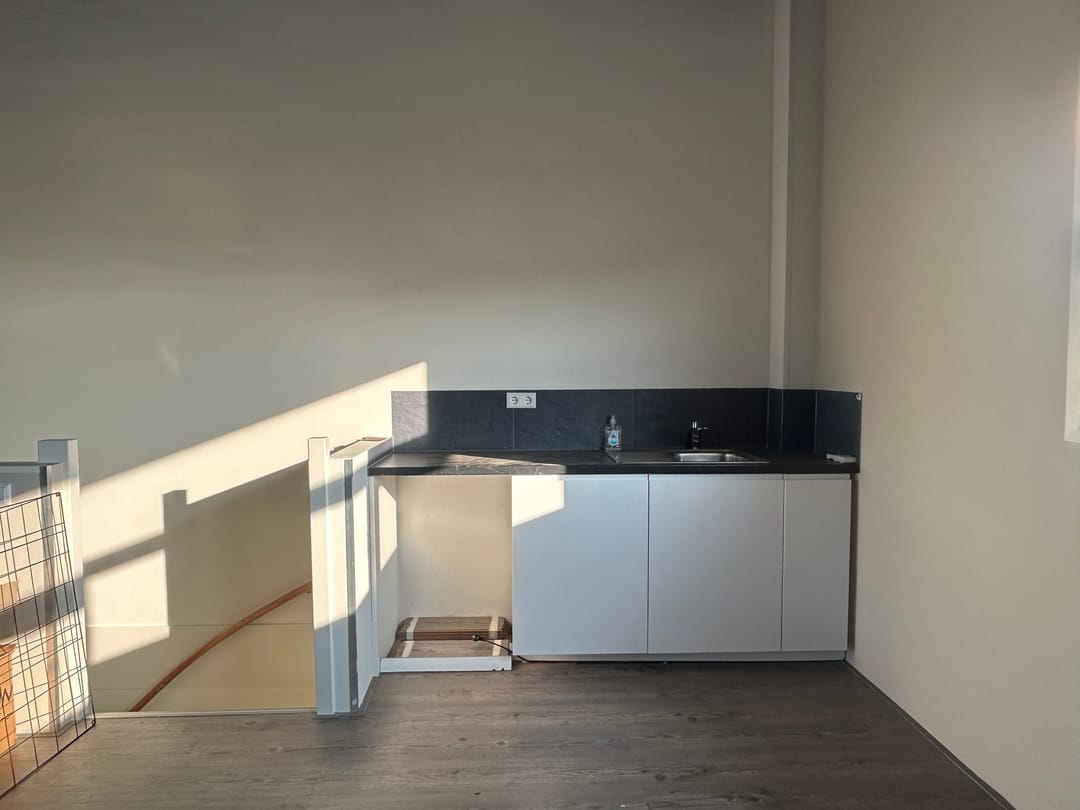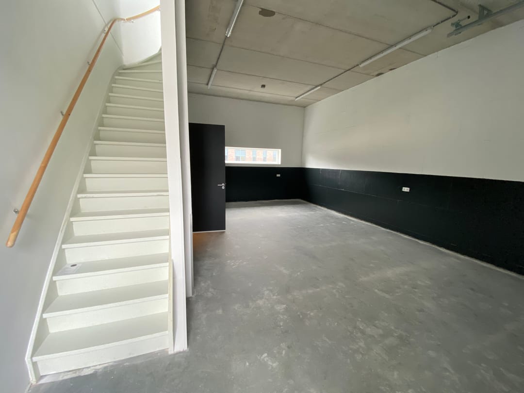 - Overheaddeuren, betonvloer, toilet, airconditioning en te openen ramen