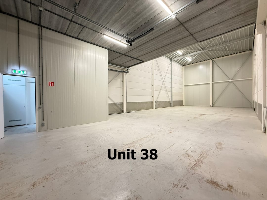 - Mechanische ventilatie, overheaddeuren, krachtstroom, betonvloer, heater, toilet, airconditioning en te openen ramen