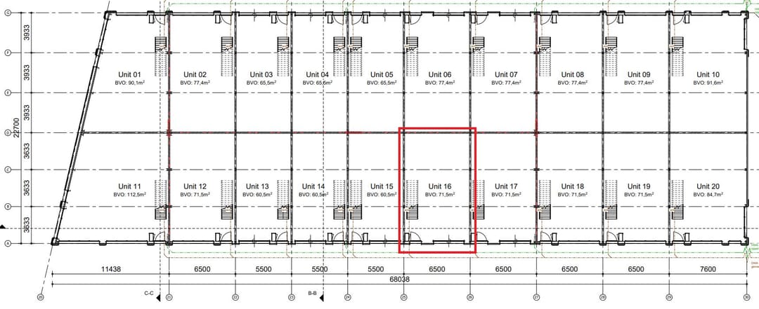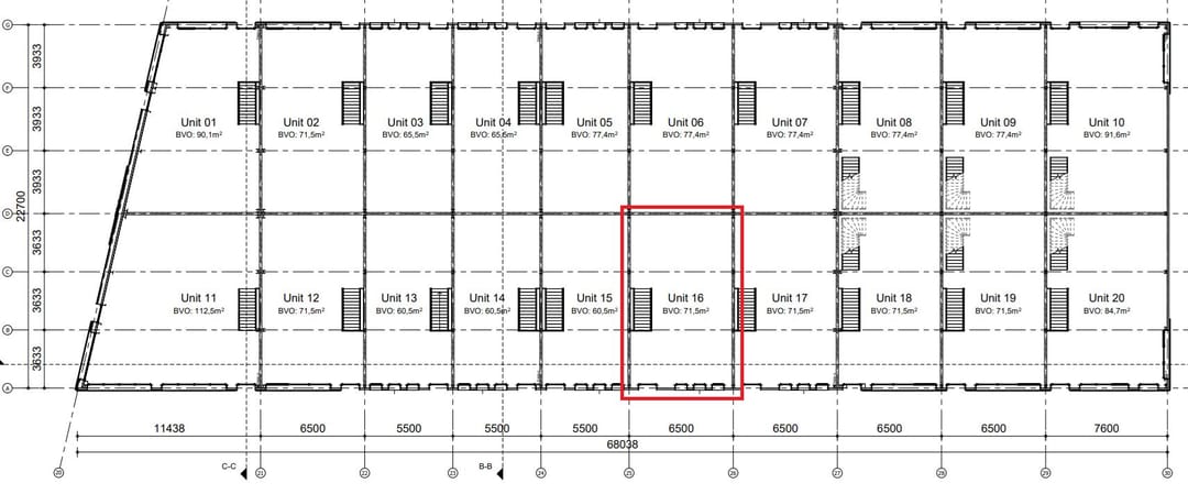 De energiezuinige unit bestaat uit een bedrijfsruimte op de begane grond van ca. 71,5 m² (BVO) en een bedrijfs-/kantoorruimte op de eerste verdieping van ca. 71,5 m² (BVO). De nieuwbouw bedrijfsruimte heeft een diepte van ca. 11 meter en een breedte ca. 6,5 meter. Hierdoor is de ruimte voor veel verschillende doeleinden te gebruiken. De unit is voorzien van een separate toegangsdeur met bovenlicht (glas boven de deur) en een elektrische overheaddeur. Door de keuze van veel lichtdoorlatende materialen en een lichtkoepel, is zowel de begane grond als de eerste verdieping voorzien van veel daglicht. De unit is onderdeel van het bedrijvencomplex Layers Amstelveen.