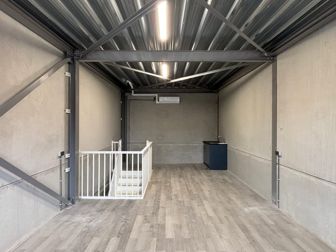 - Airconditioning, overheaddeuren, betonvloer, toilet, pantry en te openen ramen