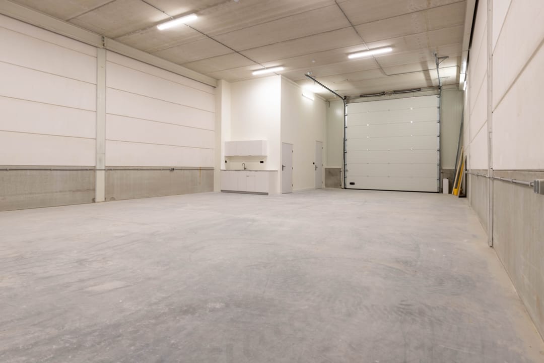 - Lichtstraten, overheaddeuren, betonvloer, toilet en pantry