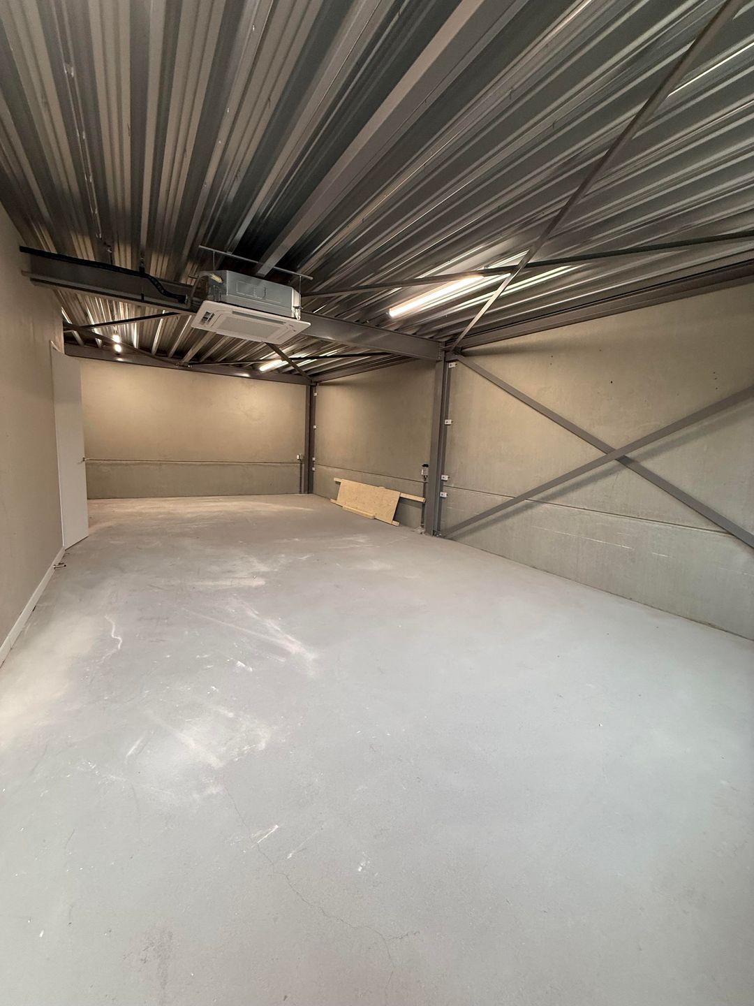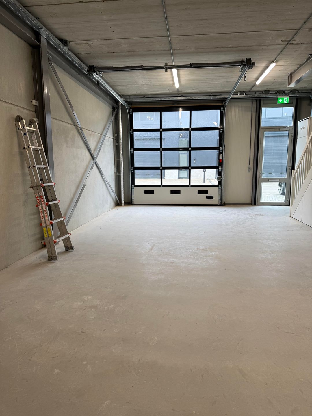 - Overheaddeuren, betonvloer, toilet, pantry en airconditioning