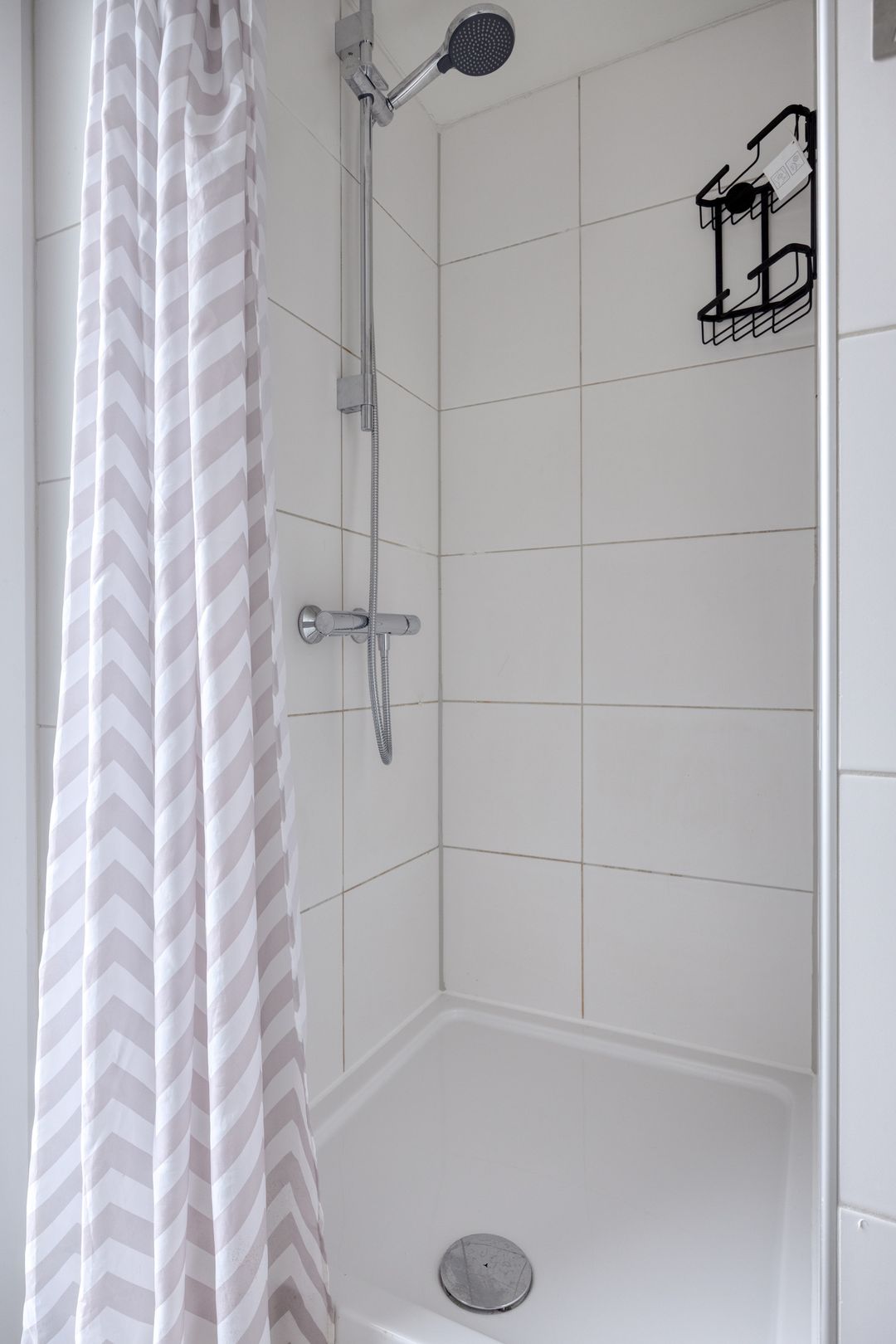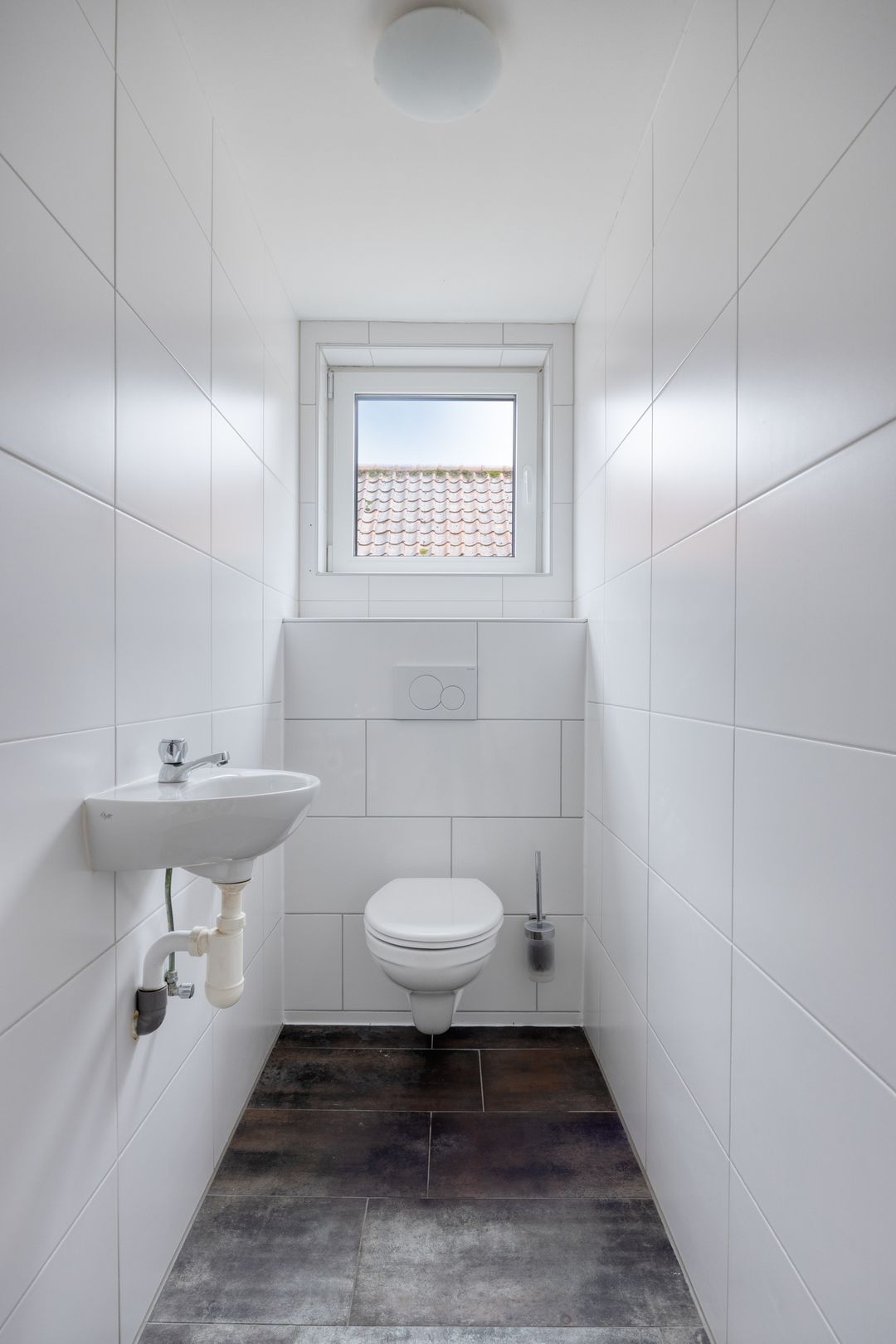 - Volledig betegeld toilet met wandcloset en fonteintje