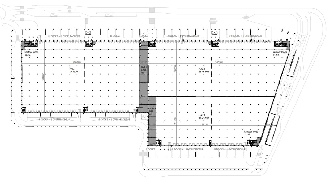 • 121 loading docks voor vrachtwagens en 79 loading docks voor busjes