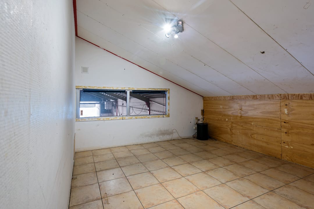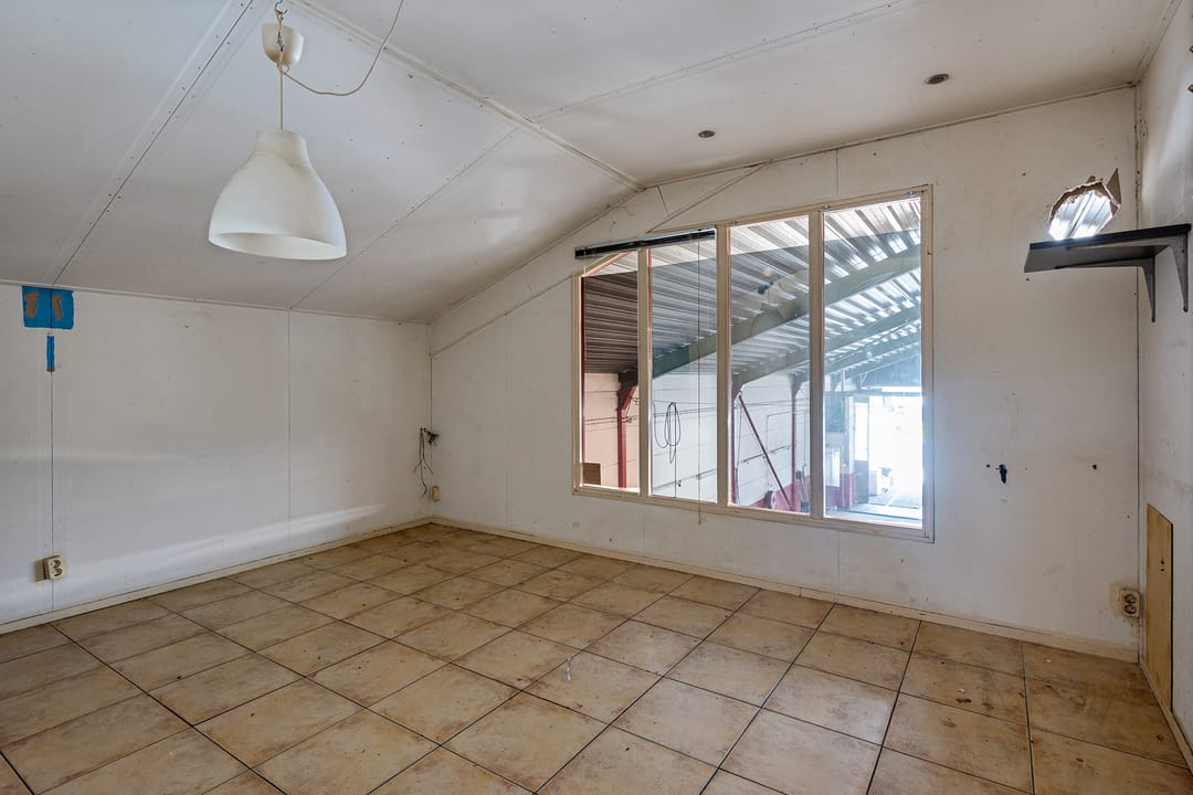 - Werkplaats met nokhoogte van ca. 590 cm;