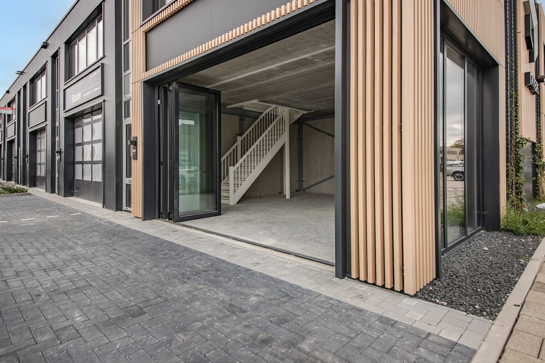 Dit gloednieuwe bedrijfspand van ca. 91m² VVO verdeeld over 2 verdiepingen, is de ideale plek om jouw bedrijf te presenteren en klanten te ontvangen. In een hoekpand met houten gevels en veel glas, springt deze unit direct in het oog. Het pand is voorzien van hoge glazen harmonicadeuren, grote ramen, betonvloeren en elektra-, water- en glasvezel internetaansluitingen. Verder is het pand geheel naar eigen wens in te richten.