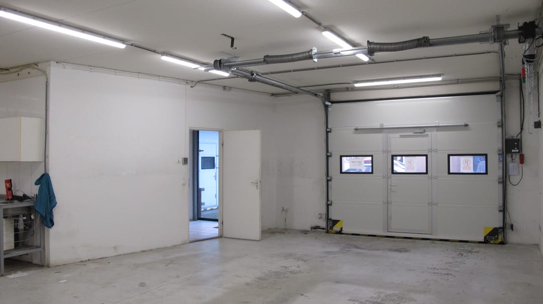 - Mechanische ventilatie, overheaddeuren, betonvloer, heater, toilet, pantry, inbouwarmaturen en te openen ramen