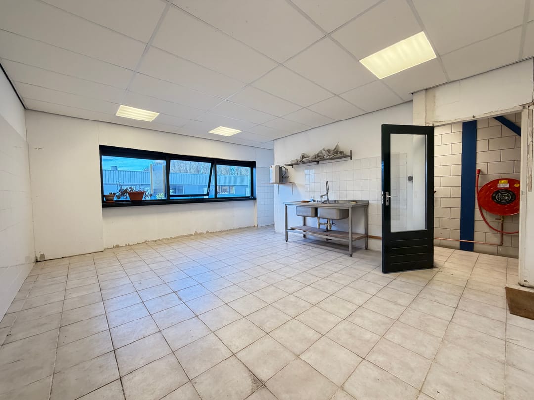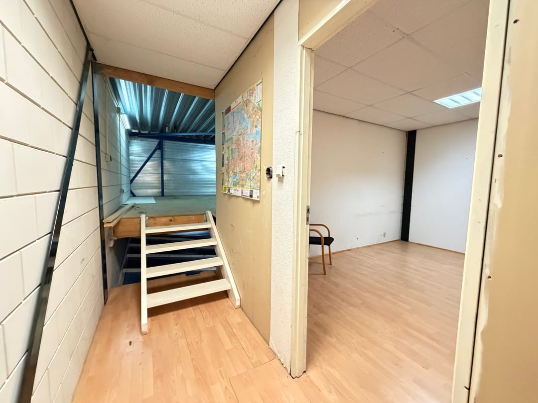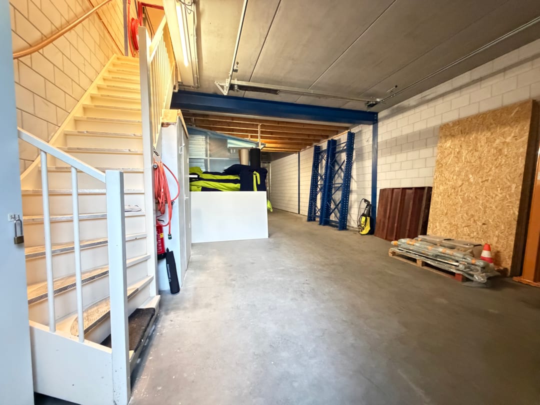 De eerste verdieping is voorzien van een raampartij. De vloer is gedeeltelijk van beton, achterin op de verdieping is een opslagruimte op een houten entresolvloer.