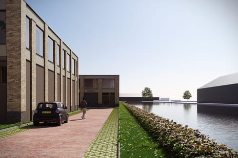Bij de dubbele bedrijfsunit behoren in totaal drie eigen parkeerplaatsen.