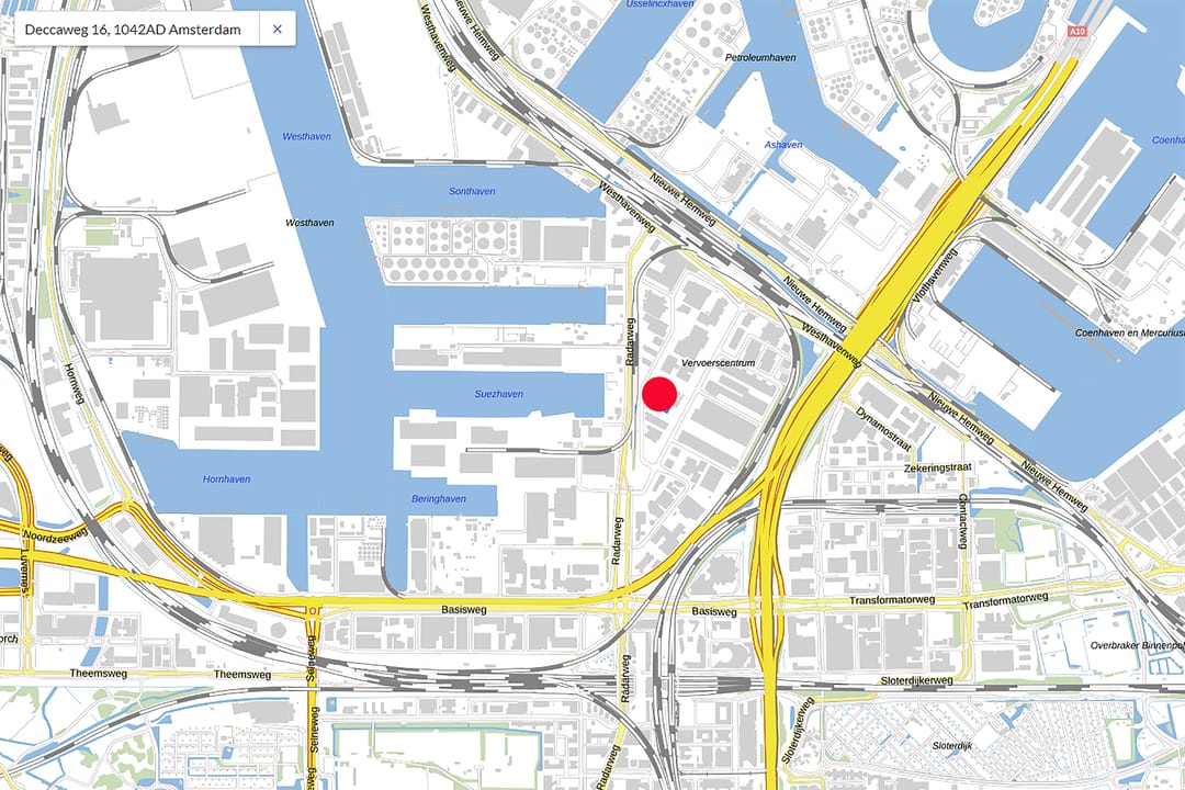 Het object is uitstekend bereikbaar met de auto via de ring A10 (afslag S101 en S102 (Basisweg).