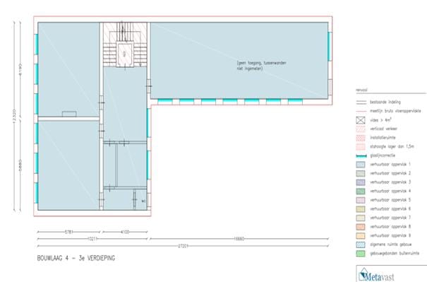 Voor de verhuur is totaal circa 160 m² kantoorruimte beschikbaar zijnde de derde verdieping van het gebouw. Tevens is het mogelijk om slechts het gedeelte aan de achterzijde te huren van circa 107 m².