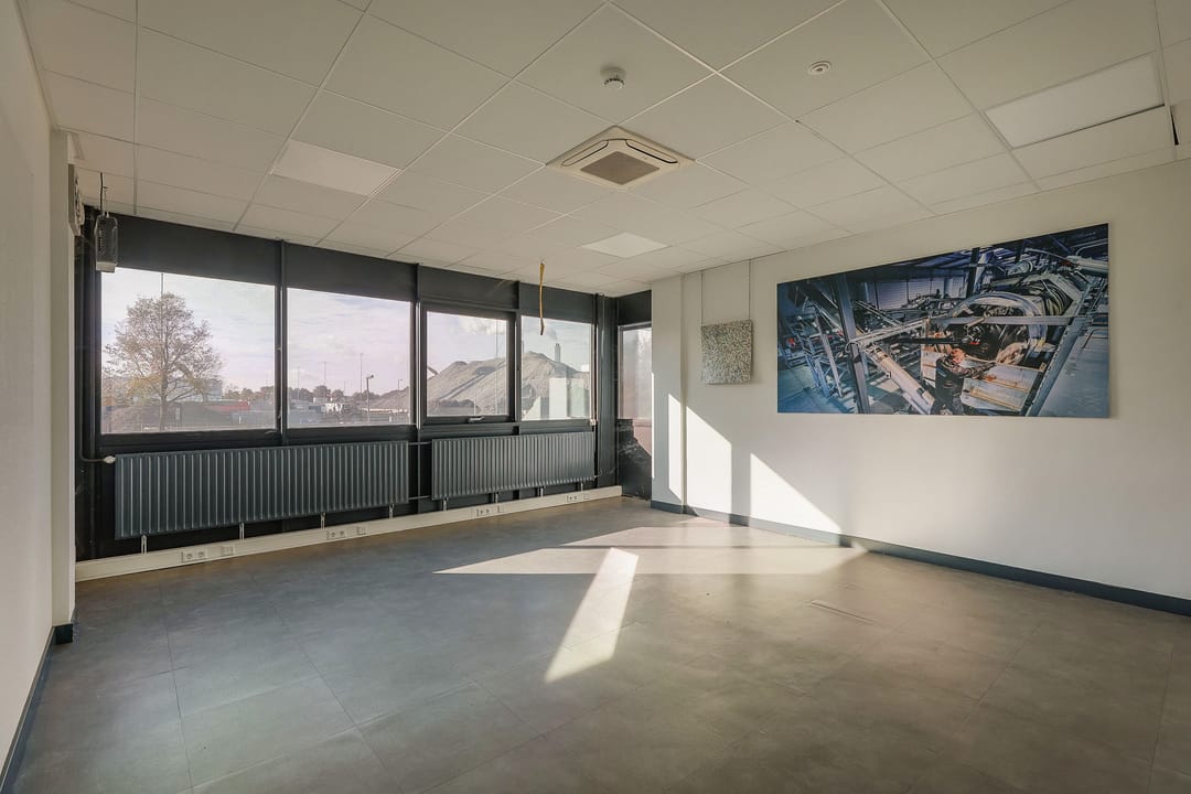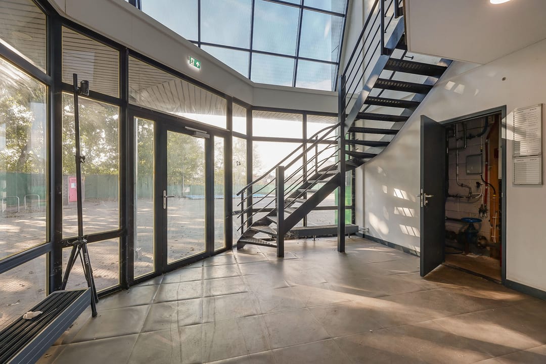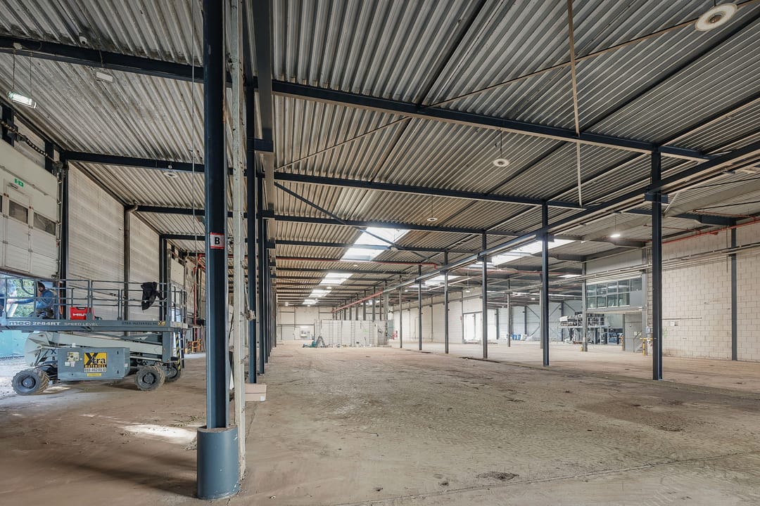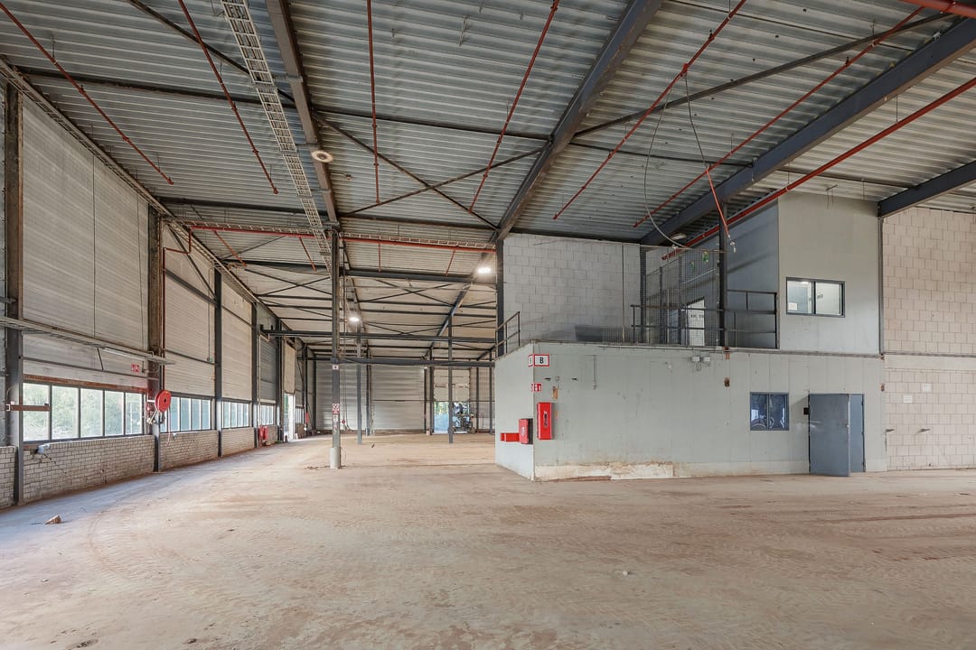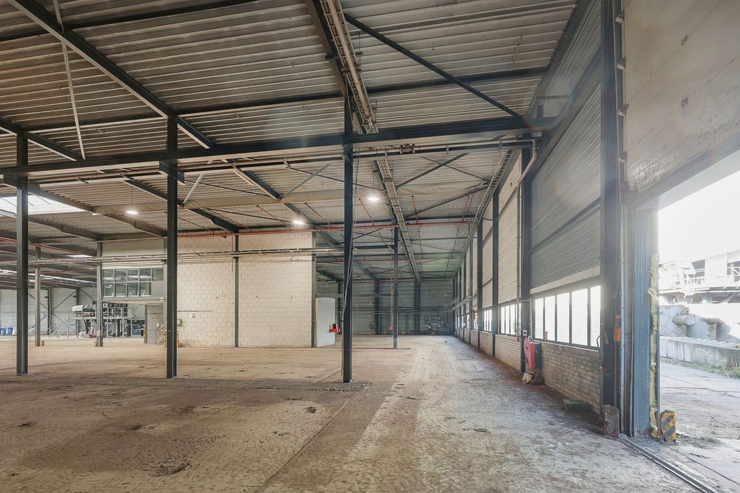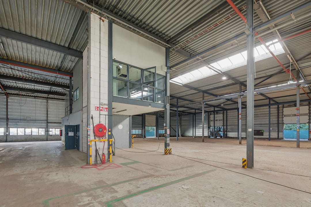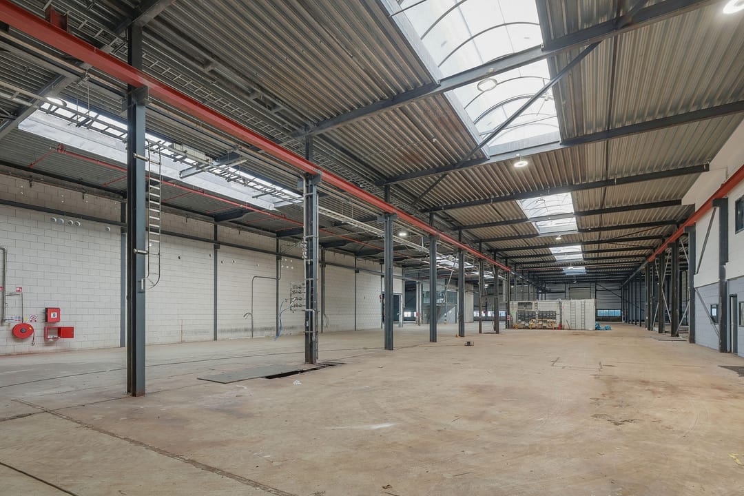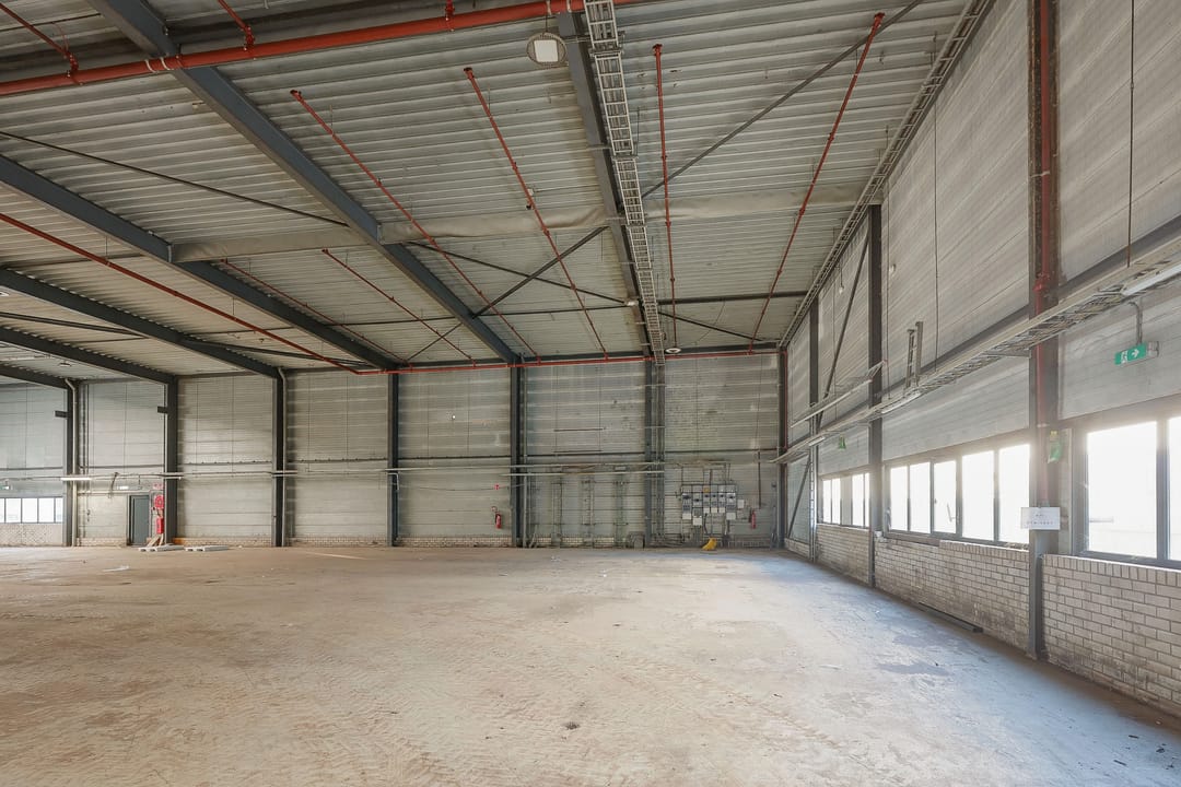 - Lichtstraten, overheaddeuren, betonvloer, sprinkler, toilet, pantry, inbouwarmaturen en te openen ramen