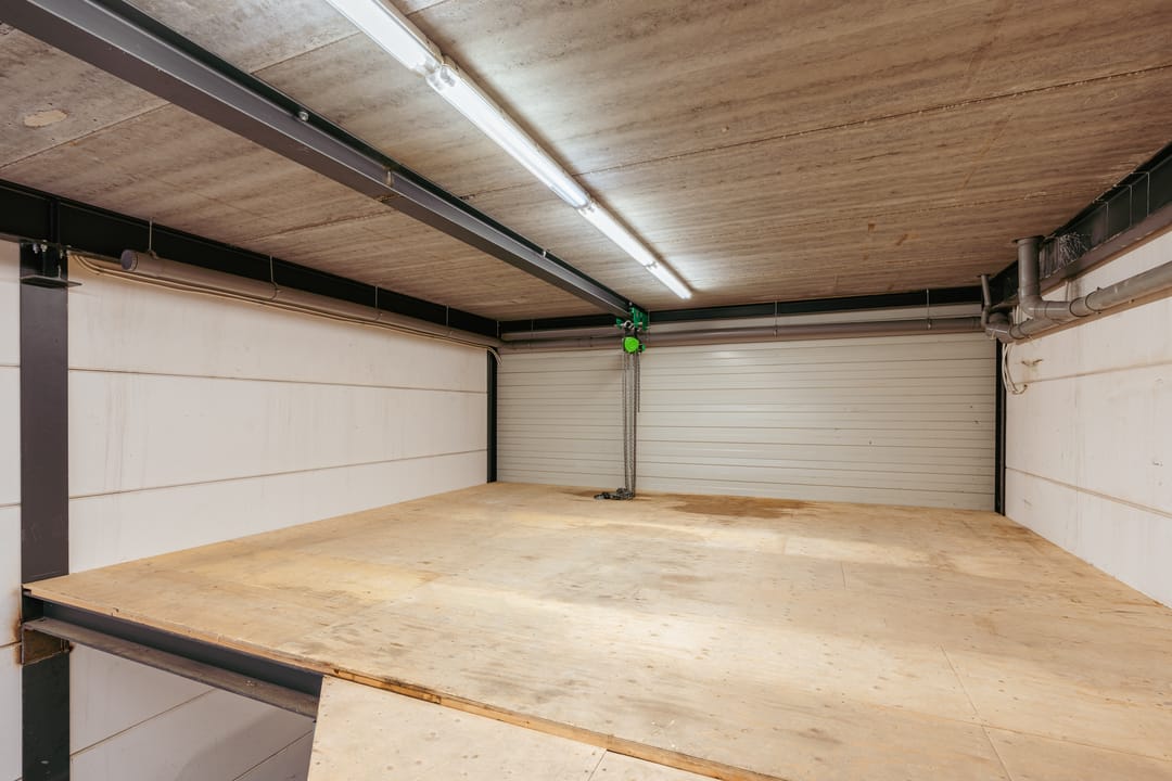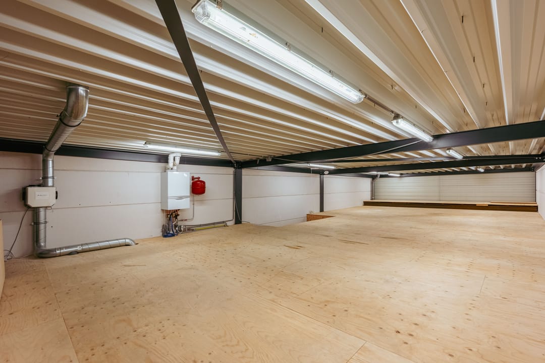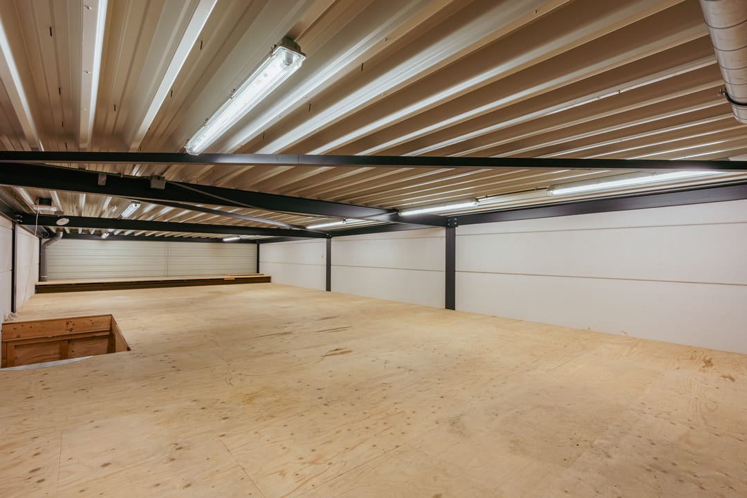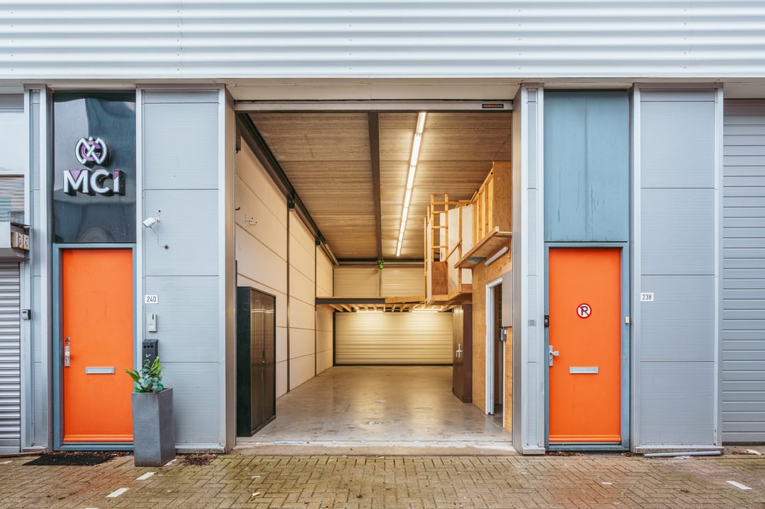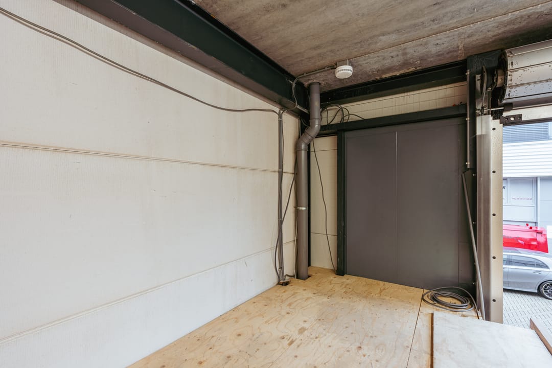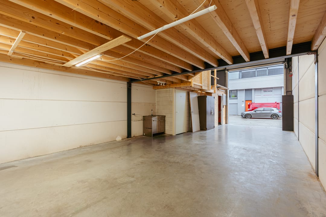 De bedrijfsruimte is ook bereikbaar via een overheaddeur en beschikt over een versterkte tussenvloer die zware belasting aankan.