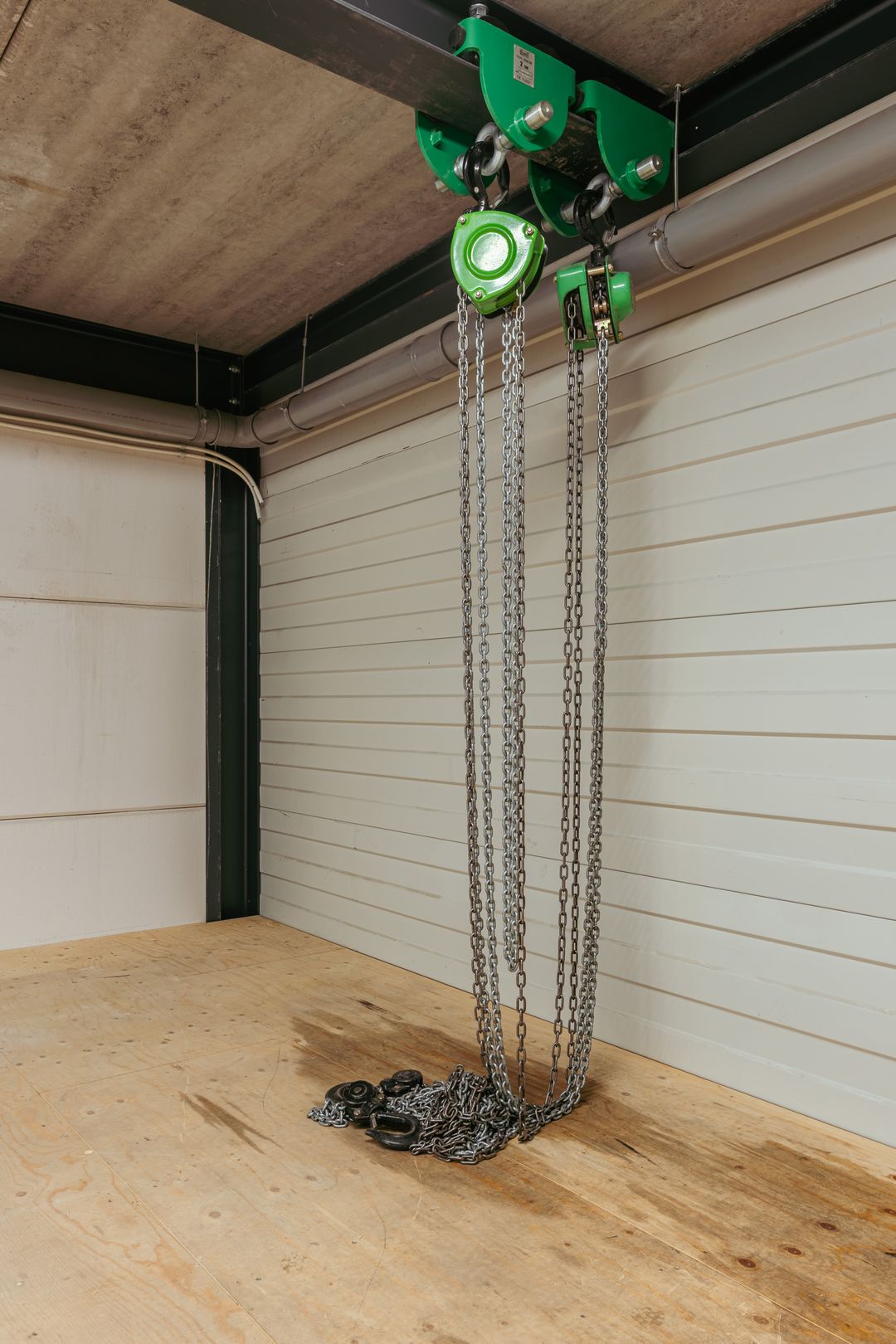 * H-beam with 2 hoists on the ceiling for moving heavy goods up to 2.5 tons