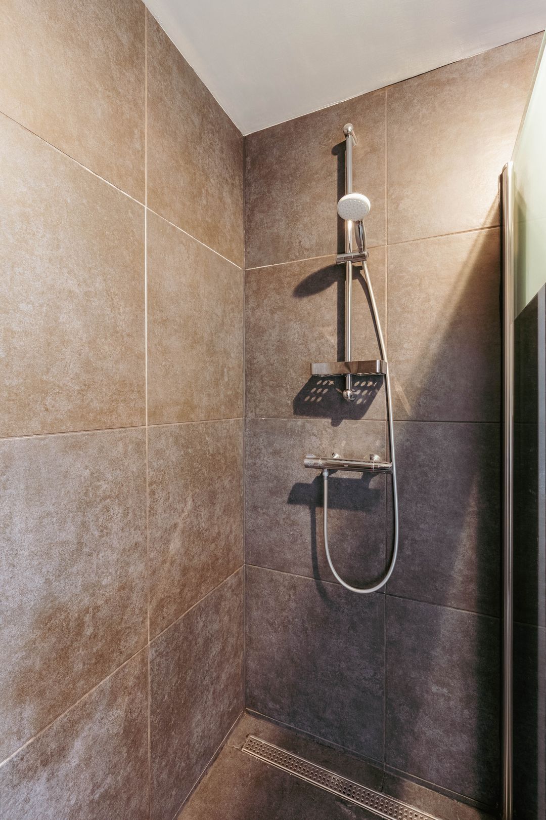 * Kantoorruimte met volledige vloerverwarming, tegelvloer en spoelbakje. Badkamer met toilet, douche en wastafel.