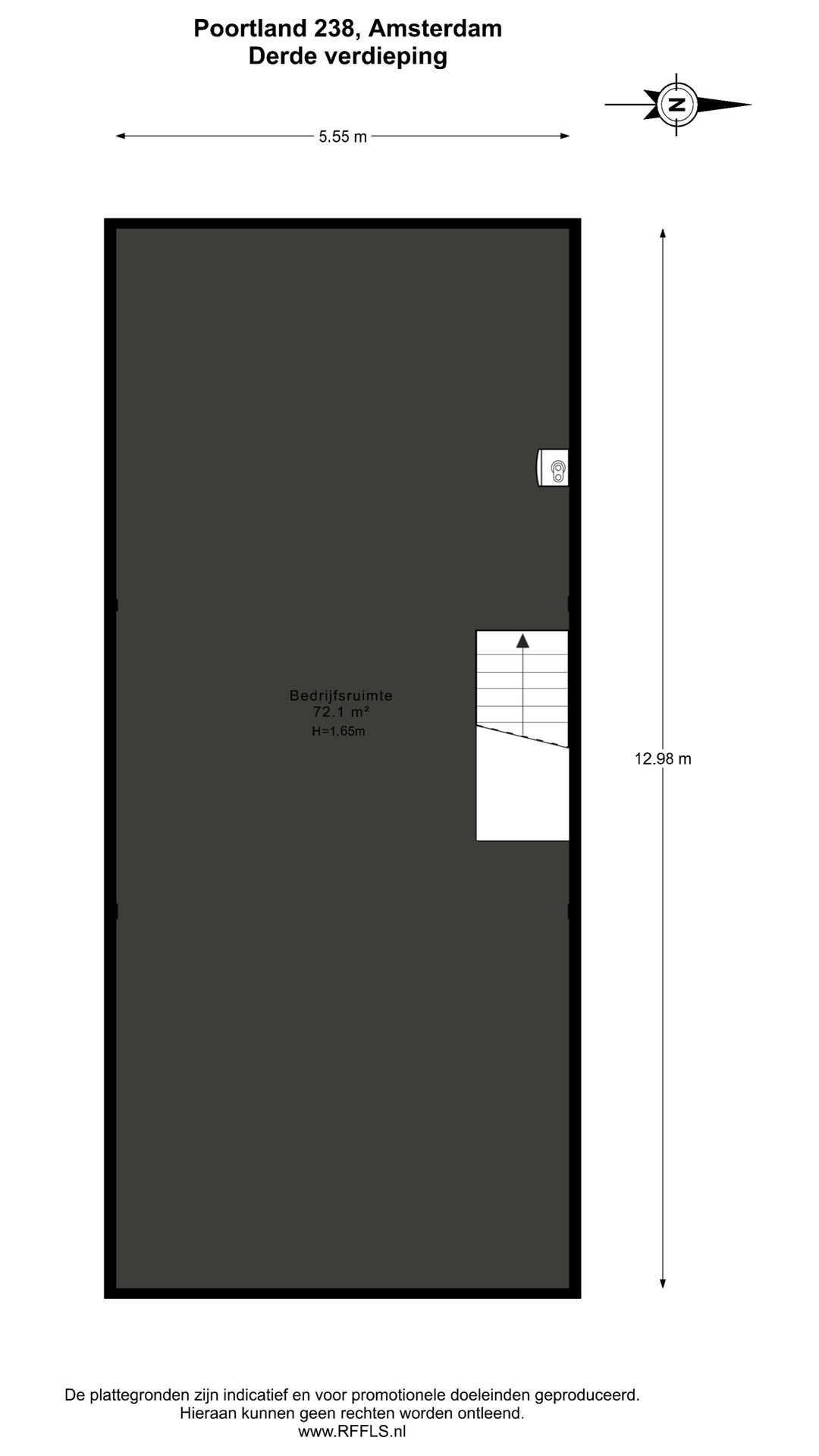 Berging 2e verdieping: 69 m² (is niet meegenomen in de meters)