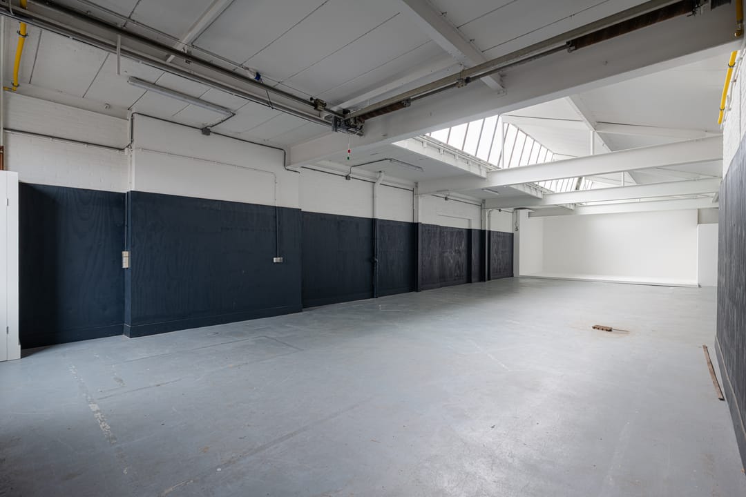 - Overheaddeuren, betonvloer, toilet en pantry