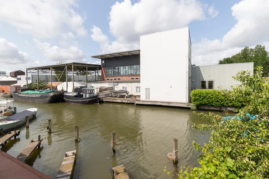 Aan de Nieuwendammerdijk in Amsterdam Noord wordt een zelfstandige bedrijfsruimte met kantoorruimte en afsluitbaar buitenterrein te koop aangeboden. Het bedrijfsgebouw van bijna 1.200 m² BVO is gelegen aan open vaarwater met directe verbinding naar het IJ. Het afsluitbare buitenterrein van circa 137 m² voorziet ruim in de behoefte voor (fiets)parkeren. De bedrijfsruimte is fysiek afgesplitst van de kantoorruimte (juridisch en bouwkundig zijn deze niet van elkaar afgesplitst) maar kan eenvoudig weer geschakeld worden. Thans zijn de kantoorruimte en de bedrijfsruimte verhuurd aan twee bedrijven (aan een vastgoedbeheerder en aan een ontwikkelaar/exploitant van hoogwaardige sanitaire voorzieningen). Het bedrijfsgebouw is gelegen op een kavel van 720 m² en op erfpachtgrond, die langjarig is afgekocht t/m 30 september 2090.