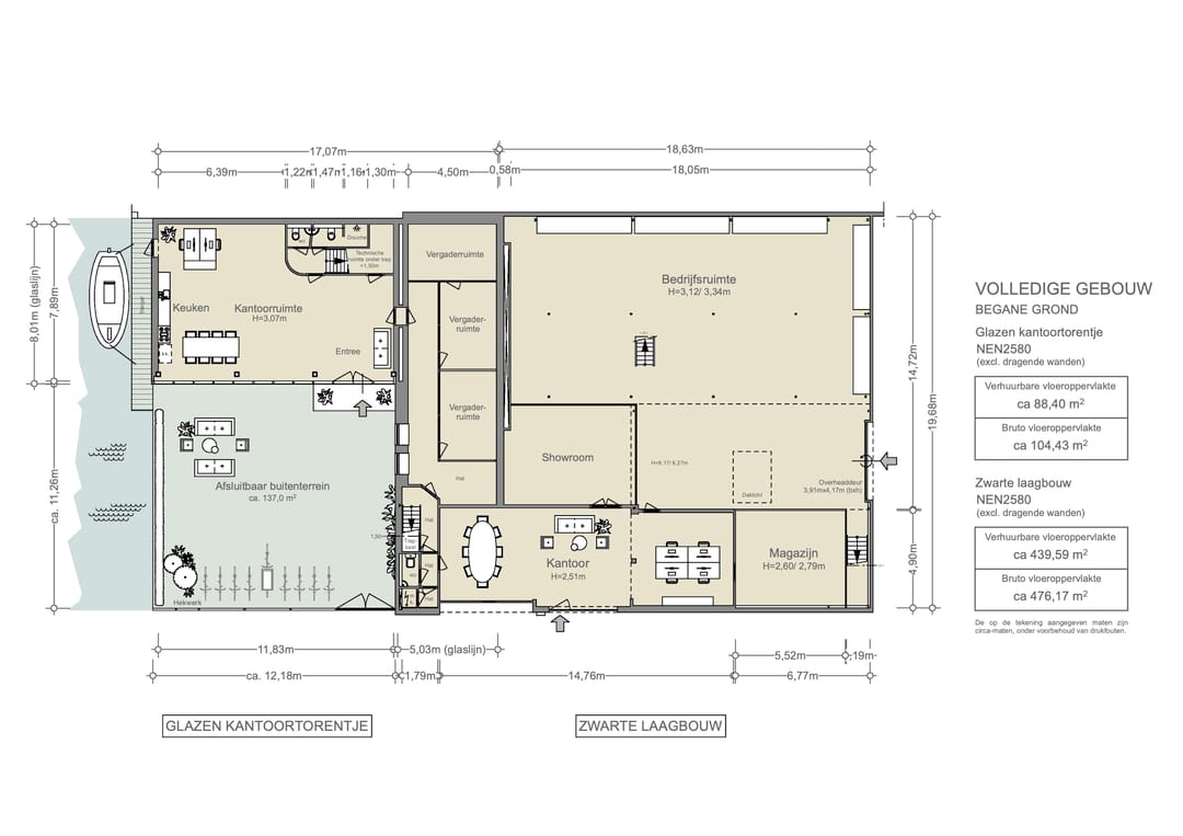 • bedrijfsruimte met vrije hoogte tot 6 meter en overheaddeur