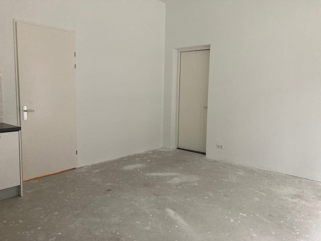 Open woon-/slaapruimte, keuken en openslaande deuren naar terras op het