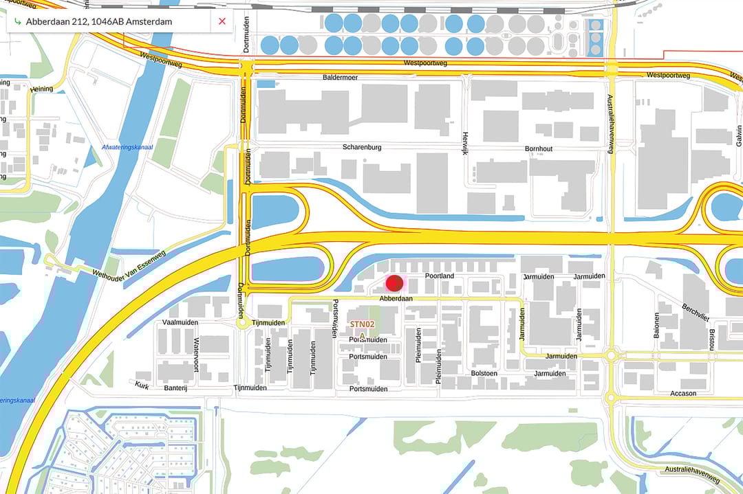 Bedrijfsunit met overheaddeur en voorzien van kantoor/showroomruimte Gelegen aan de Abberdaan 212 te Amsterdam, aan één van de doorgaande wegen van bedrijventerrein Sloterdijk III.
