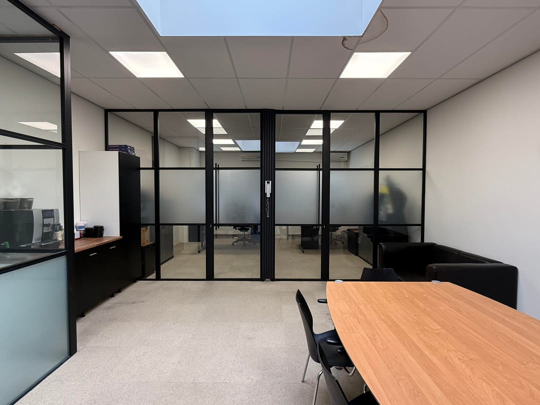 - Overheaddeuren, betonvloer, toilet, airconditioning, inbouwarmaturen en te openen ramen