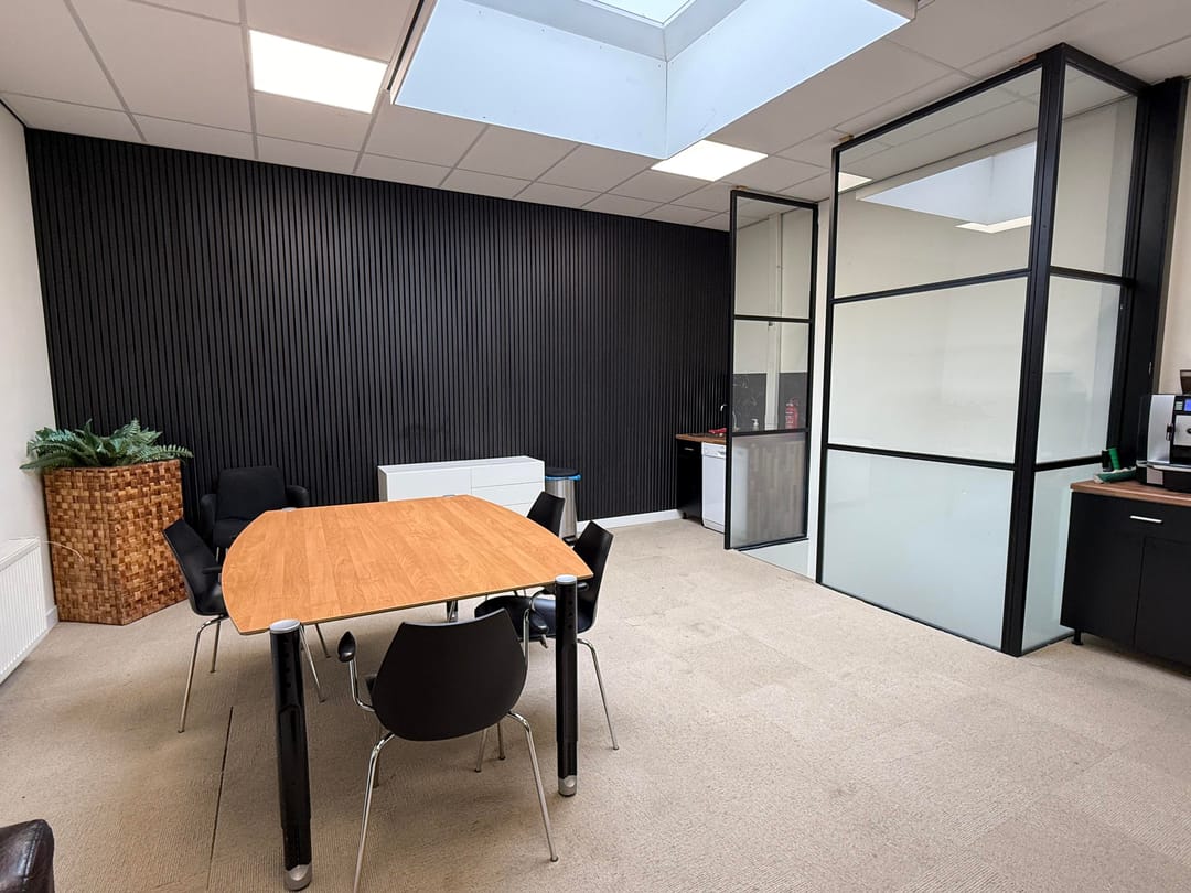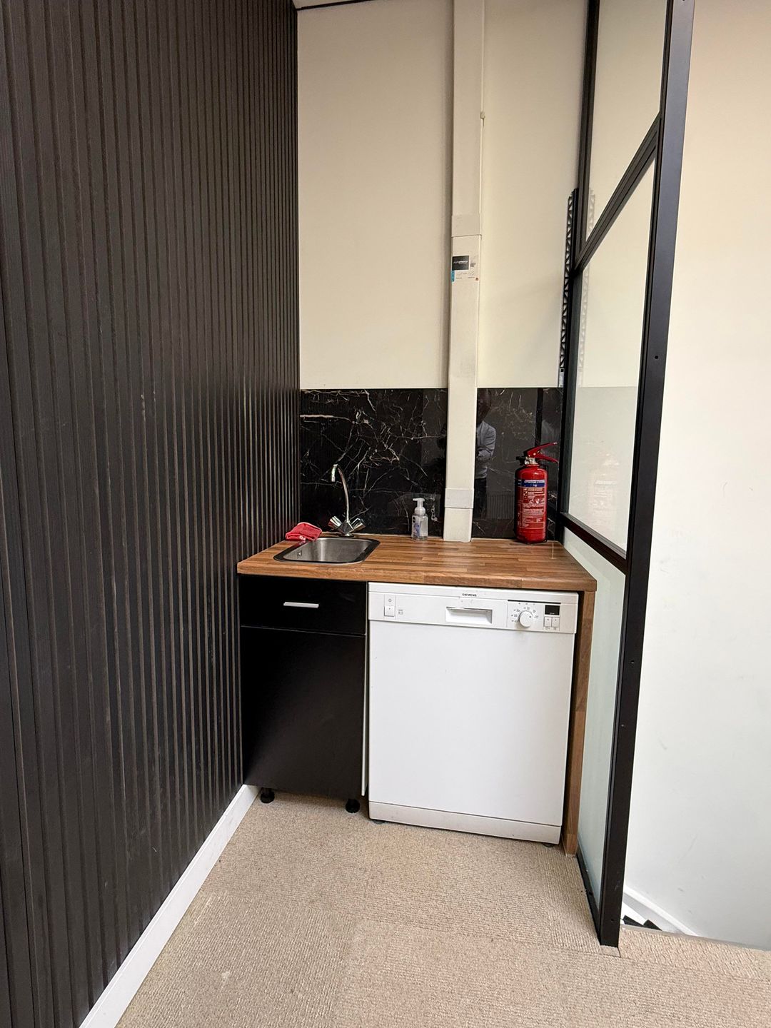 Wanneer u de trap vervolgt naar de 2e verdieping, arriveert u in het grote kantoor. Hier bevindt zich de koffiehoek alsmede de pantry en open ruimte met daklicht. Grenzend aan deze ruimte zie je nog 2 aparte kantoorruimten welke beide een airco-unit hebben.