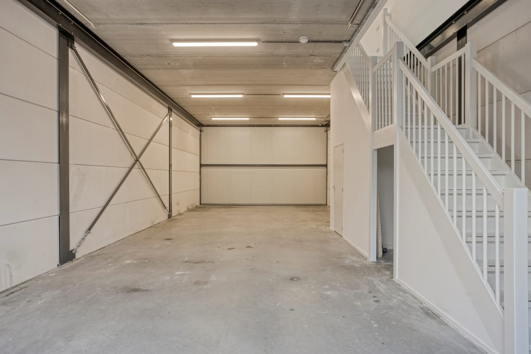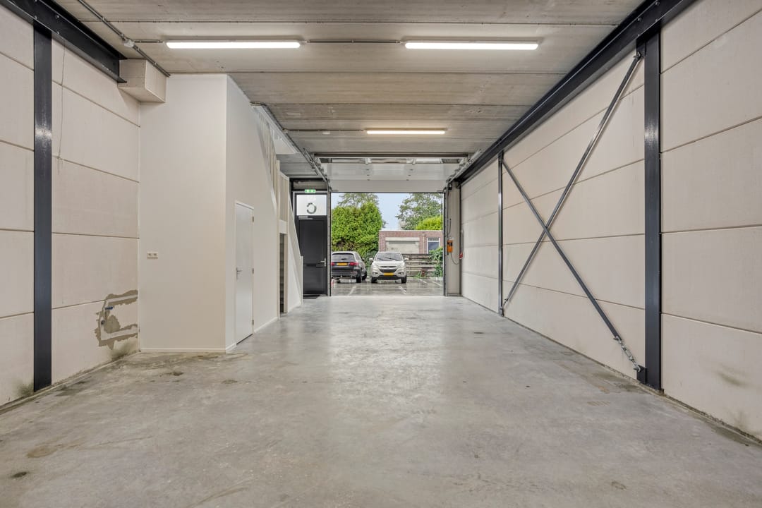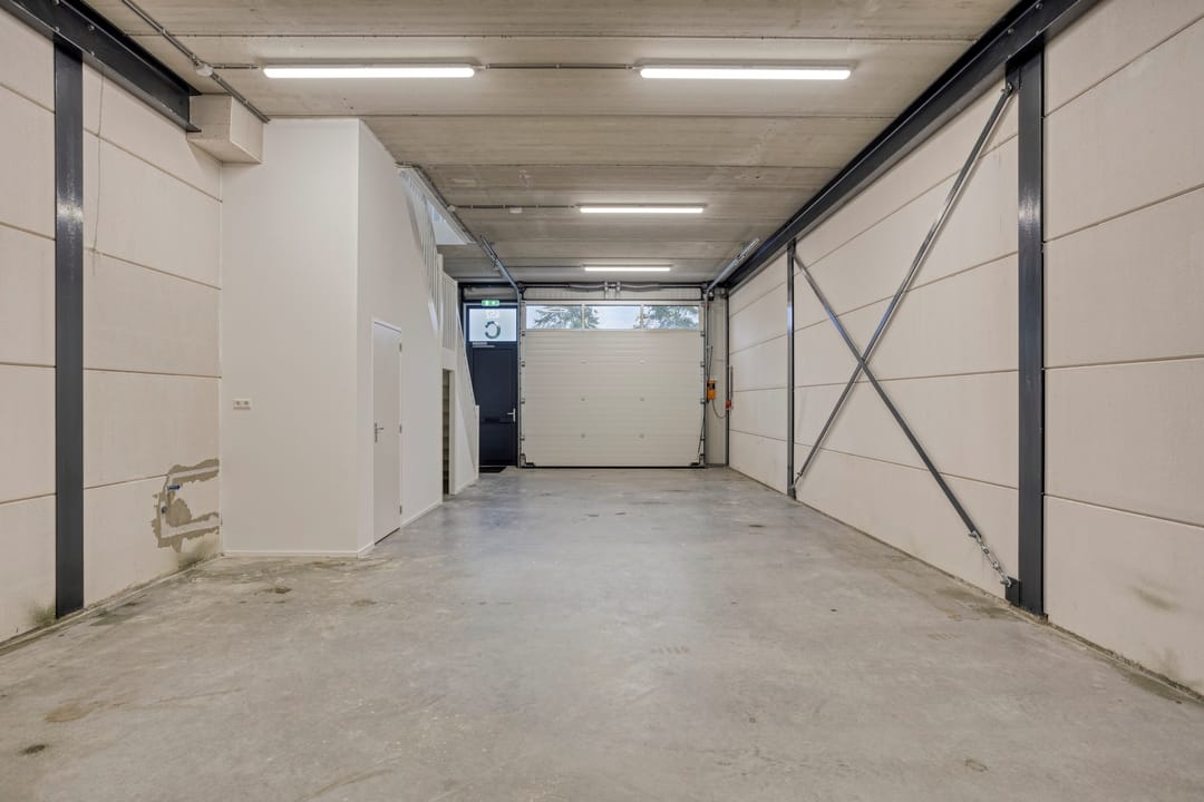 De begane grond (ca. 82 m²) is voorzien van een elektrische overheaddeur, een vrije hoogte van 3,70 meter en een maximale vloerbelasting van 2.000 kg/m². De kantoorverdieping (ca. 82 m²) beschikt over grote ramen aan beide zijden, waardoor er veel natuurlijk licht binnenvalt. Daarnaast zijn er 2 eigen parkeerplaatsen op het terrein.
