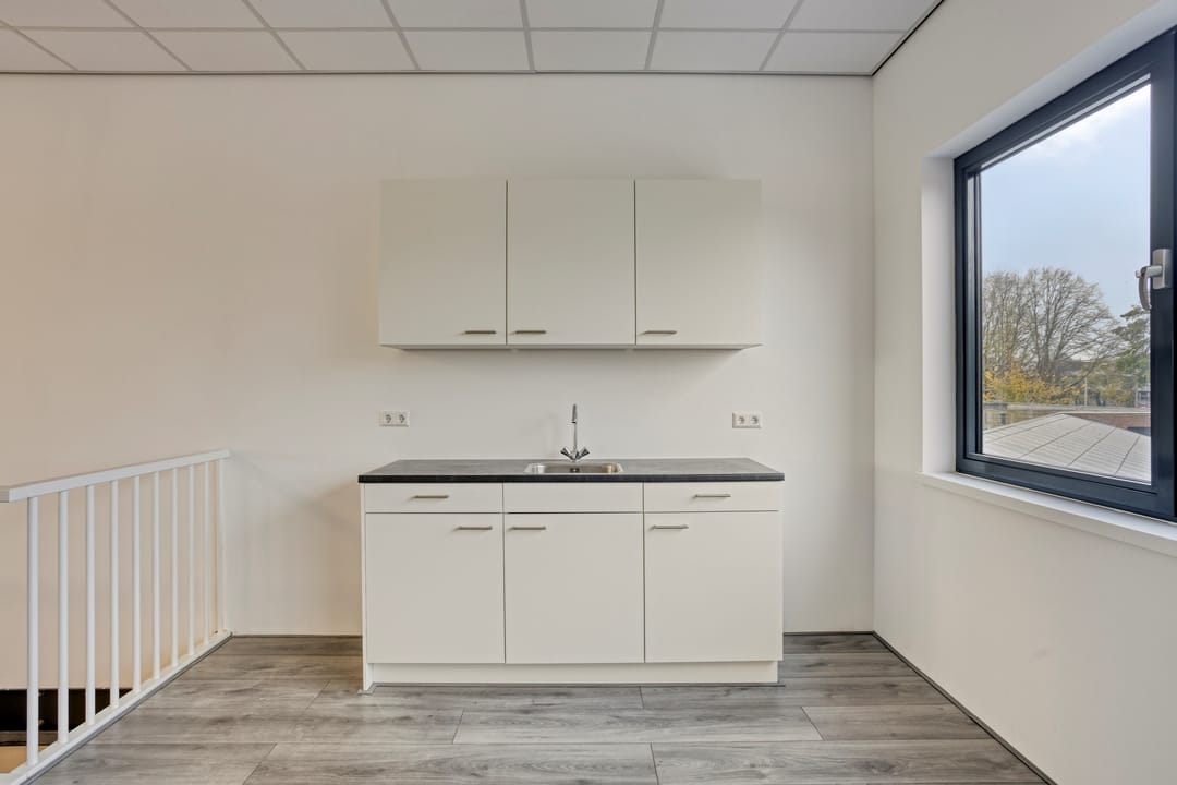 • Verdieping: kantoorruimte met kleine keuken, grote ramen voor en achter