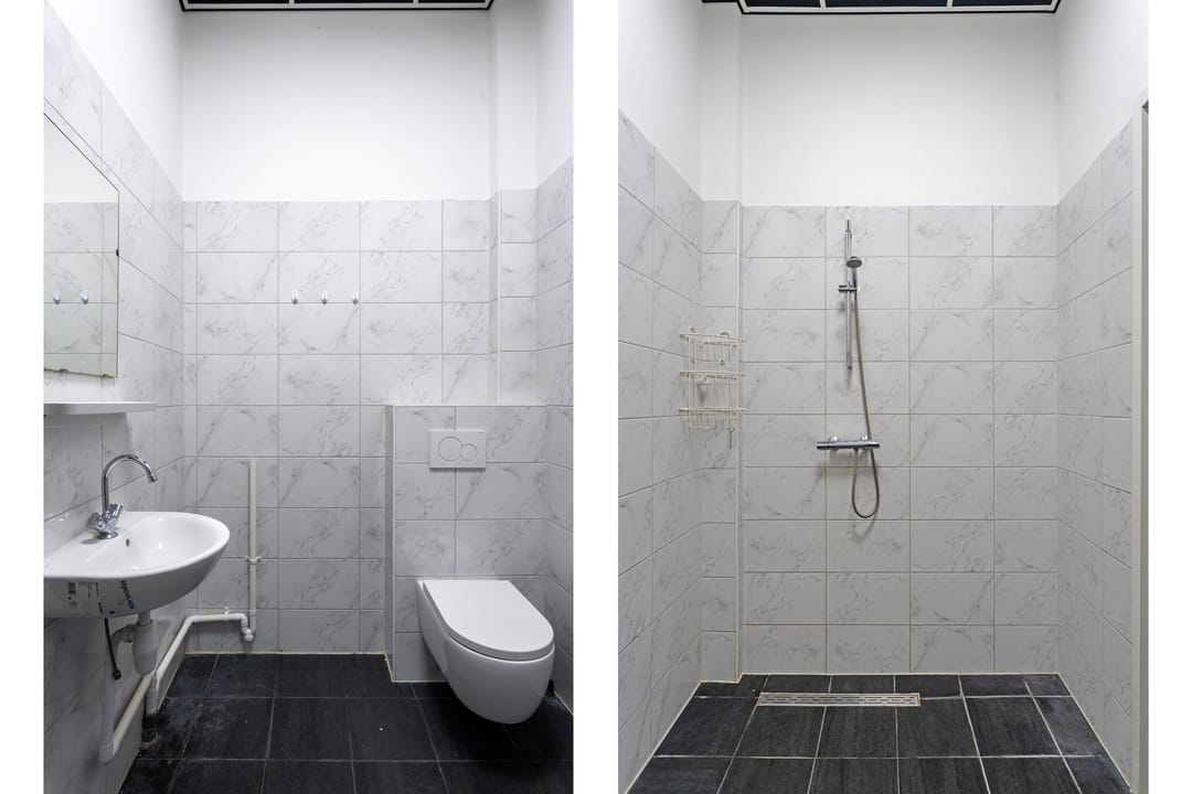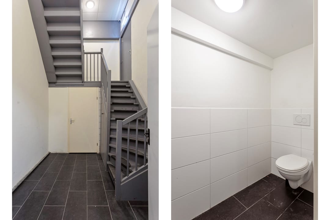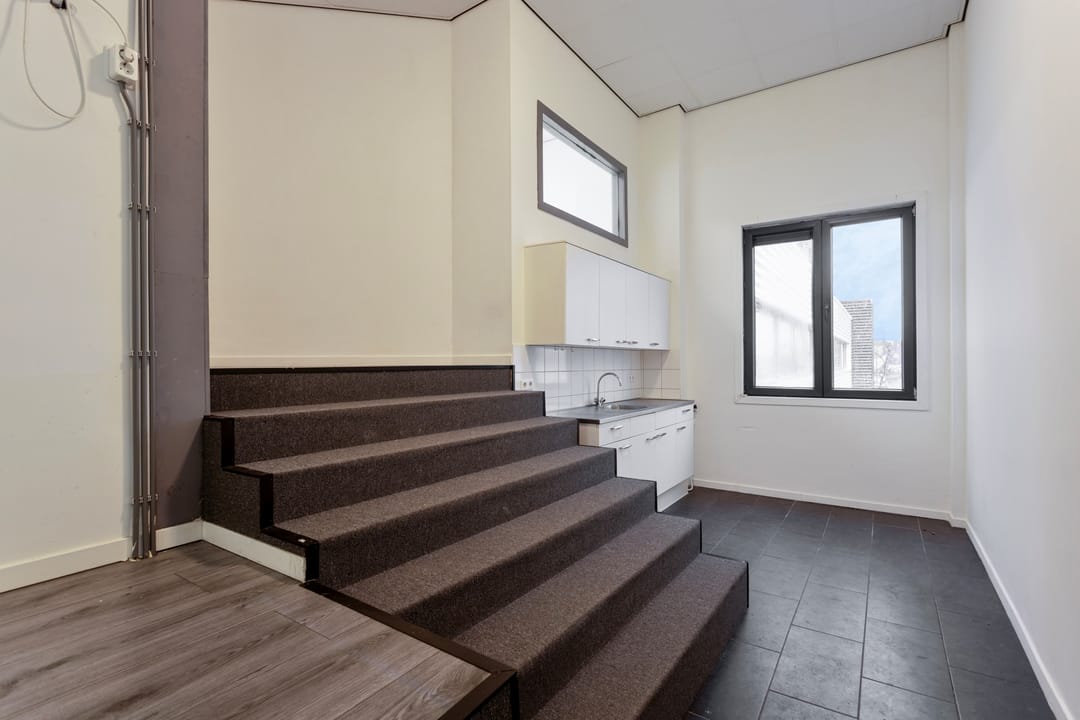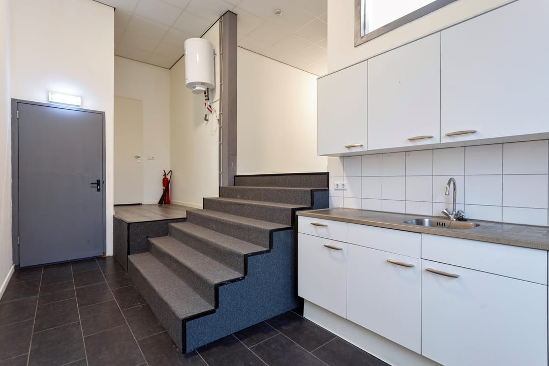 Vanaf de straat loopt u direct het pand binnen, waar u en uw bezoekers altijd makkelijk kunnen parkeren. Dit is erg praktisch, zeker tijdens drukke werkdagen. De entree vormt een prettig beginpunt en geeft toegang tot de opslagruimte, de toiletruimte en de trap naar boven. Het is een overzichtelijke en functionele ruimte.