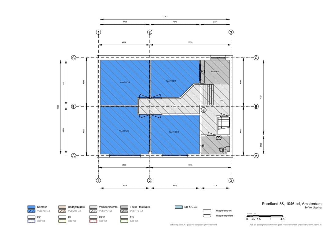 Aan Poortland 88 in Amsterdam staat een ruim en verrassend compleet bedrijfspand dat meteen laat zien waar het voor bedoeld is: prettig werken, efficiënt organiseren en professioneel ontvangen. De begane grond biedt u een brede bedrijfsruimte met opslag, een praktische roldeur en een handige overkapping. Op de eerste verdieping vindt u meerdere kantoorruimtes en een keuken, terwijl de tweede verdieping extra kantoorruimte én een badkamer toevoegt. Het hele pand is voorzien van airco en beschikt in totaal een BVO van 308m² bestaande uit 158m² kantooroppervlakte, 99m² bedrijfsruimte op de begane grond en 51m² algemene ruimte. Een veelzijdig pand waar u veel kanten mee op kunt.