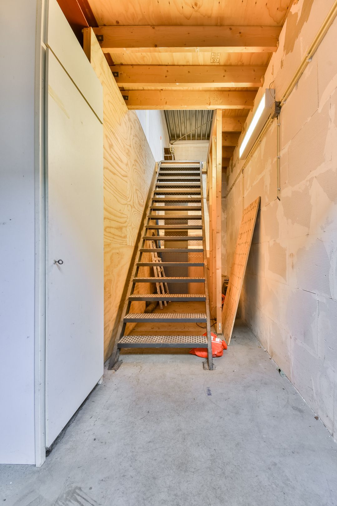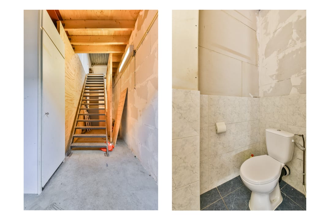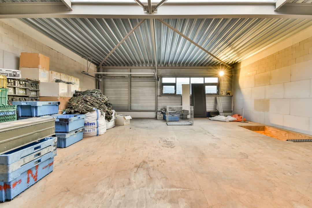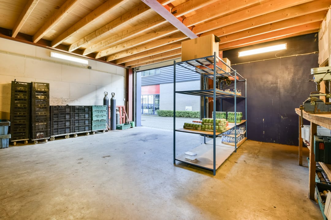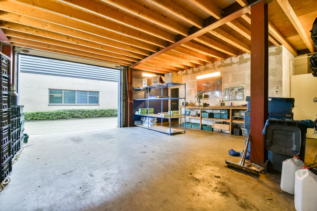 - Overheaddeuren, betonvloer, toilet en pantry