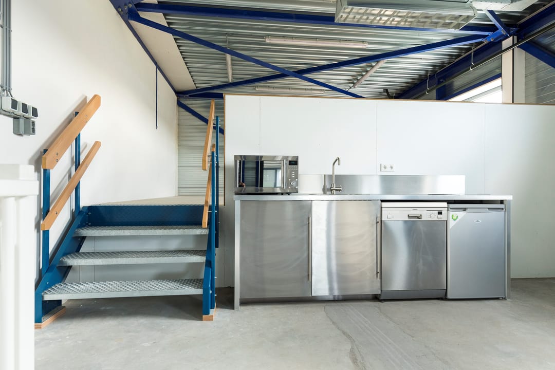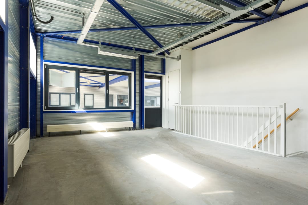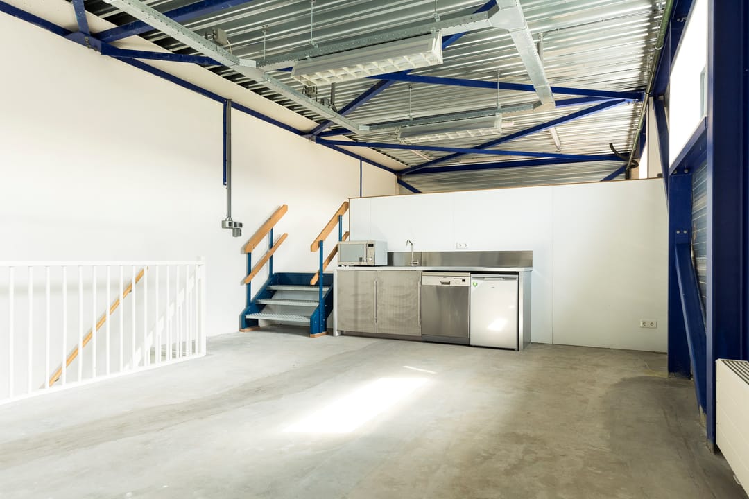 Open kantoorruimte met industriële uitstraling, voorzien van kabelgoten en een entresol. De ruimte beschikt over te openen ramen voor natuurlijke ventilatie en veel daglicht. Tevens is er een afgescheiden gedeelte met een RVS keuken en een aanwezige cv-installatie.