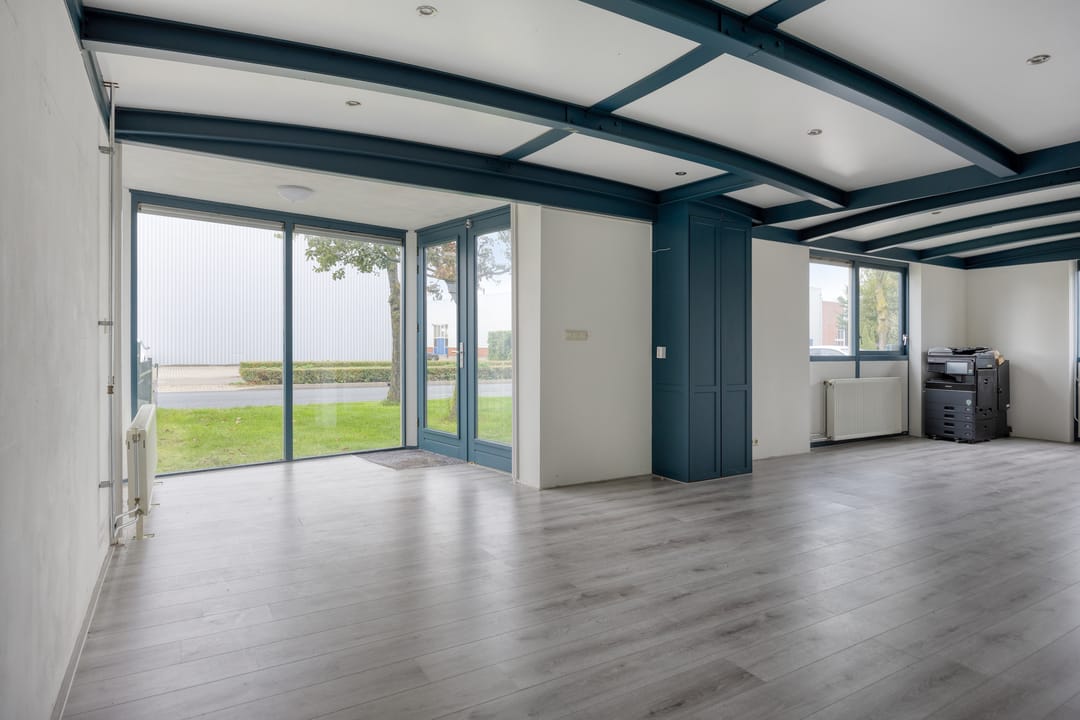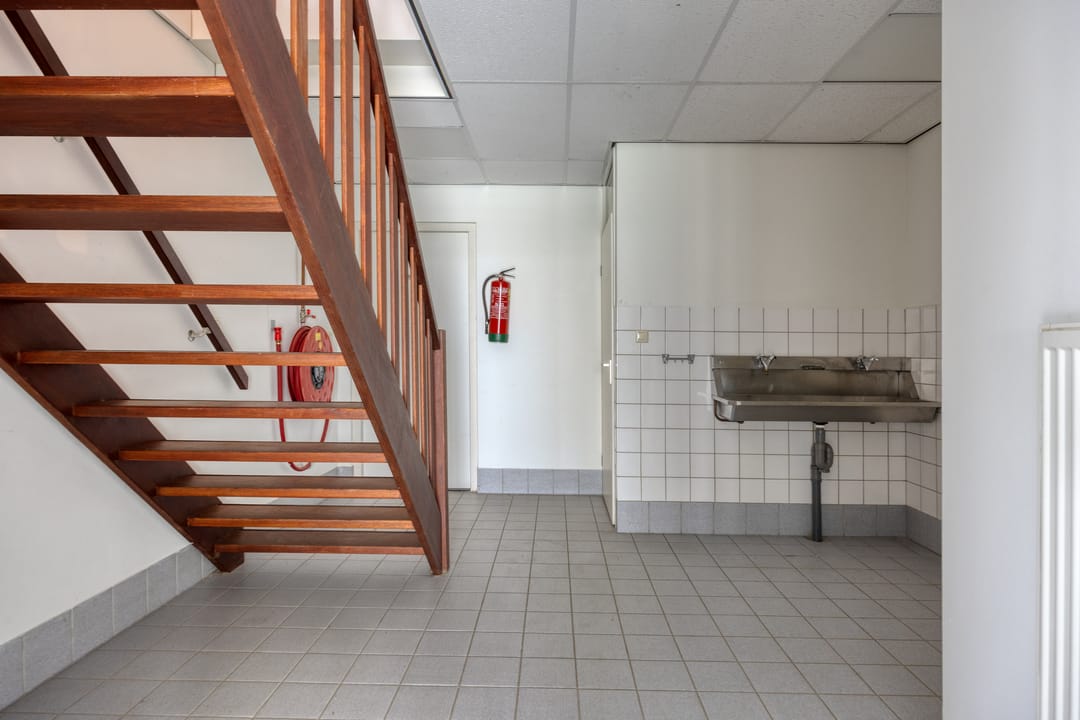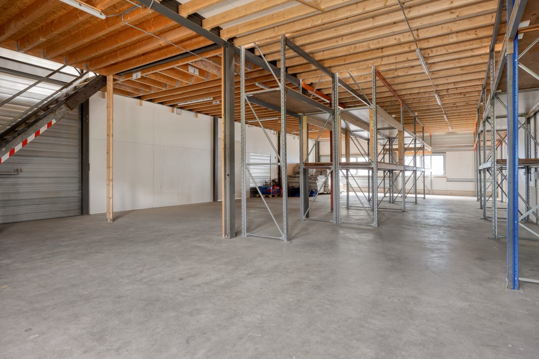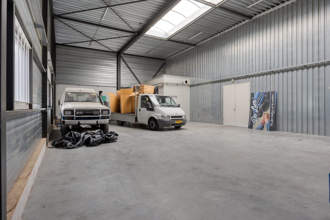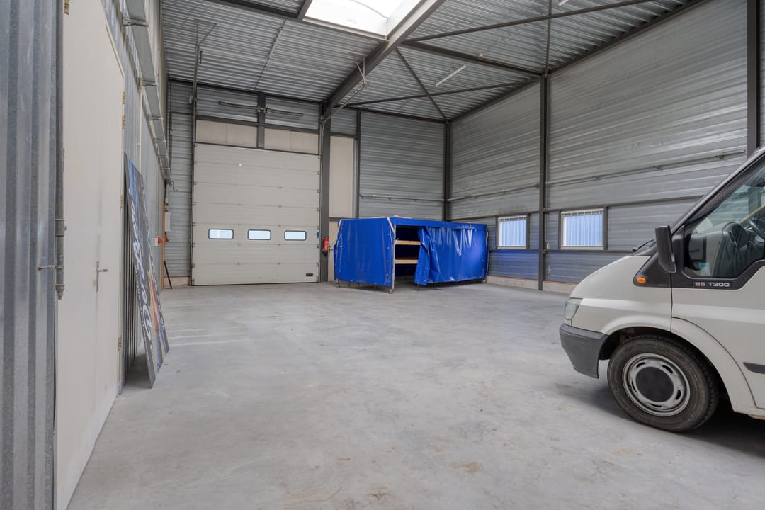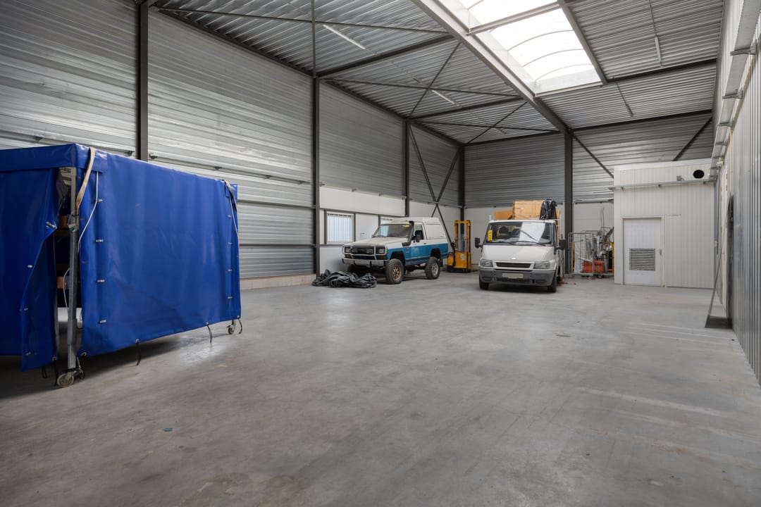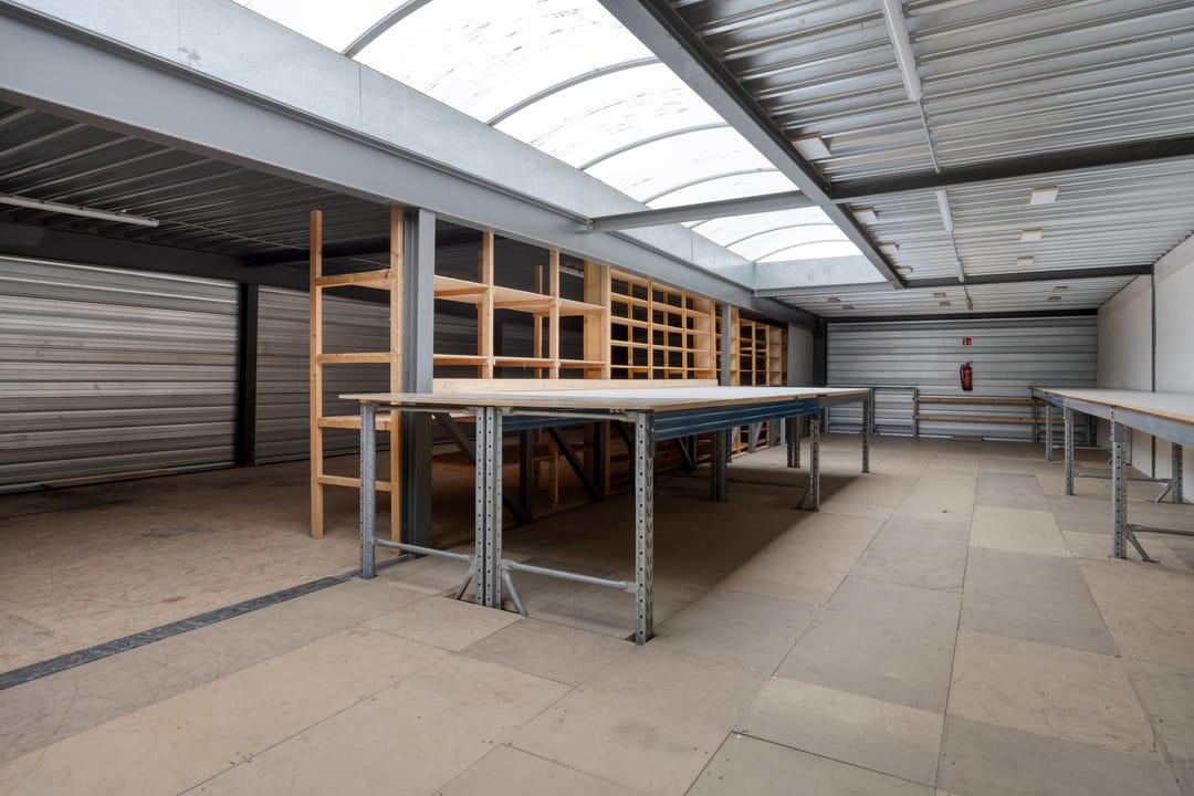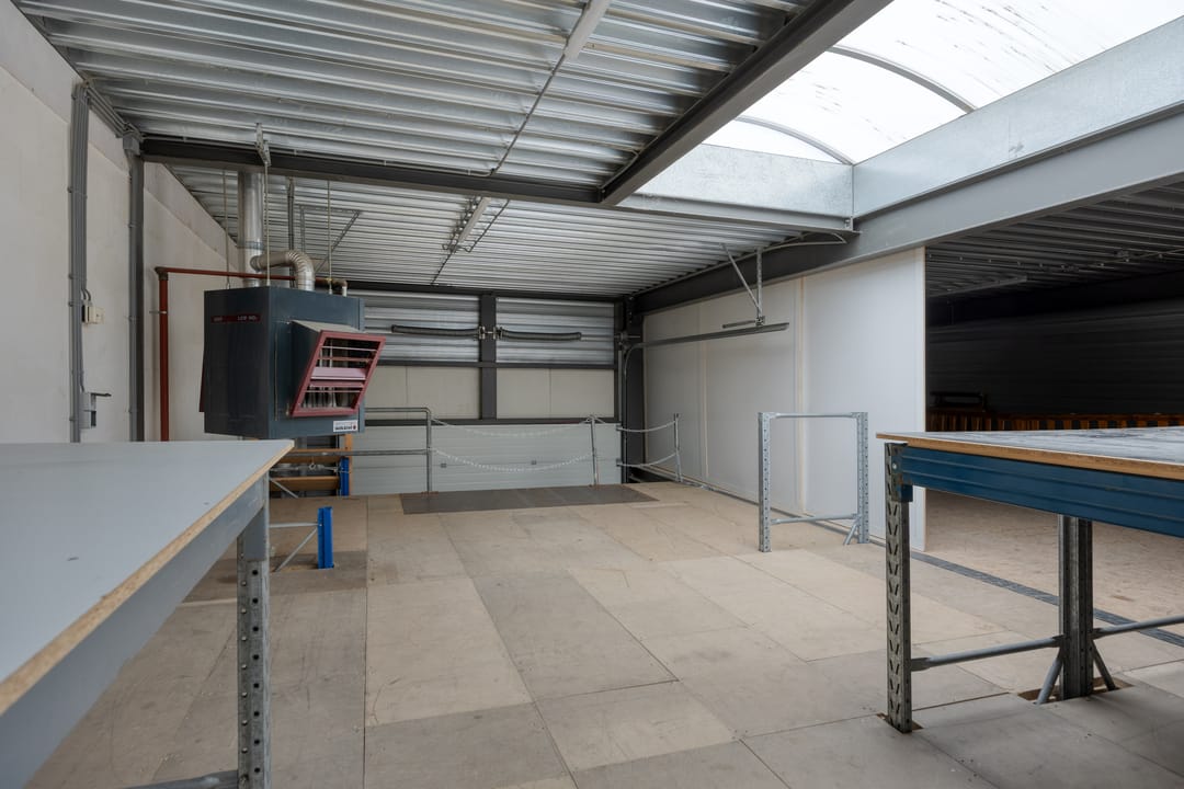 - Lichtstraten, overheaddeuren, betonvloer, toilet, pantry en te openen ramen