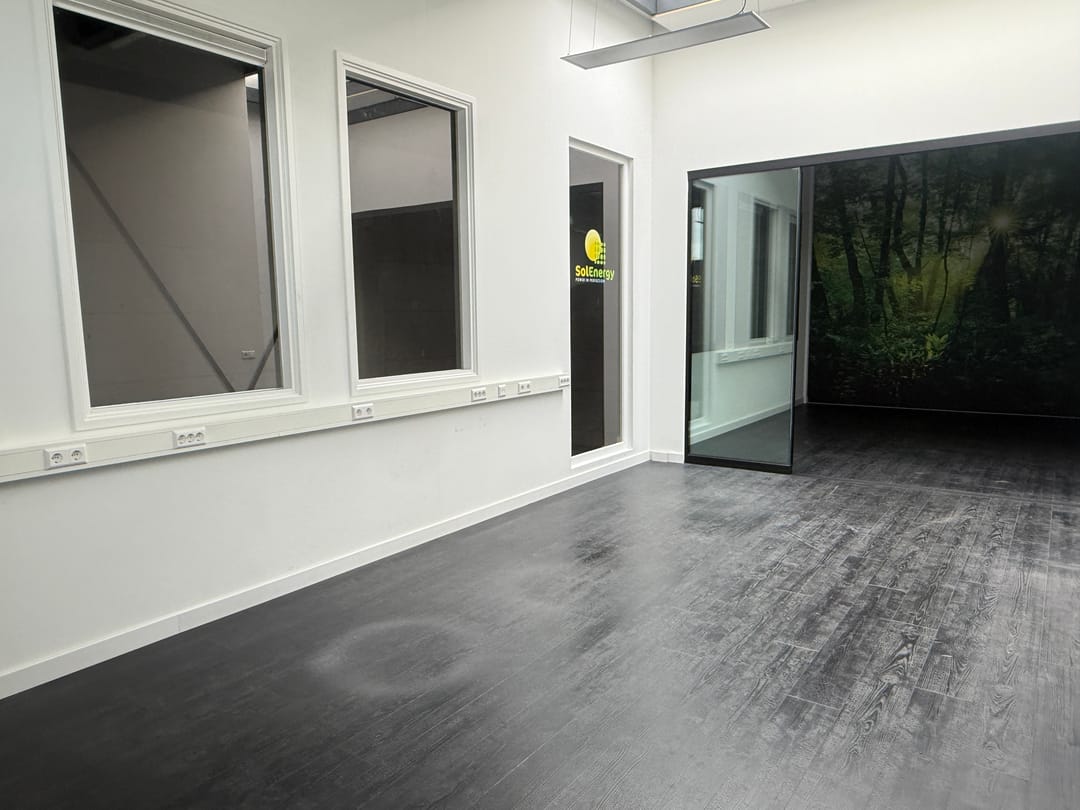 - Airconditioning, overheaddeuren, krachtstroom, betonvloer, toilet en te openen ramen