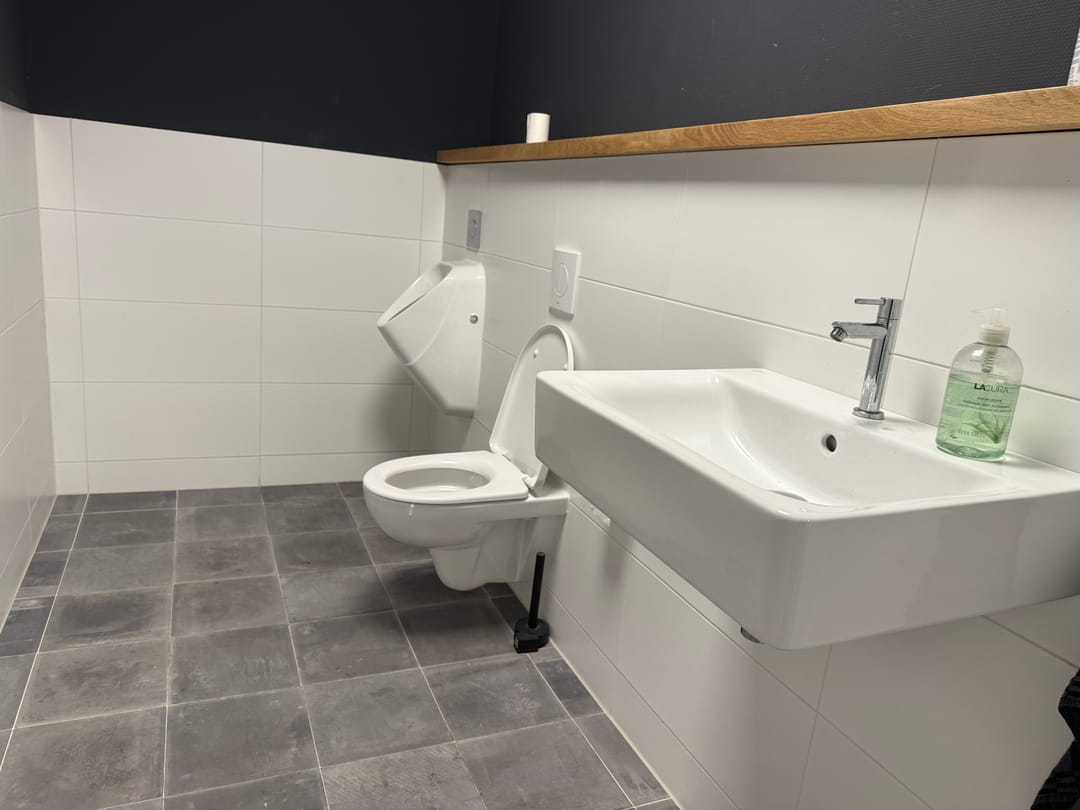 -Verzorgd toilet met urinoir en wastafel aanwezig