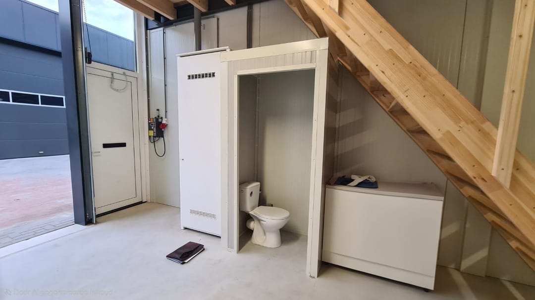 De bedrijfsunit is voorzien van een toiletafvoer met een aansluiting op het gemeentelijk riool.