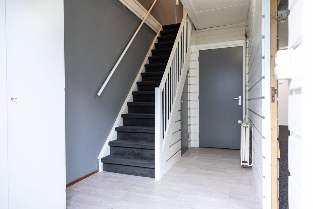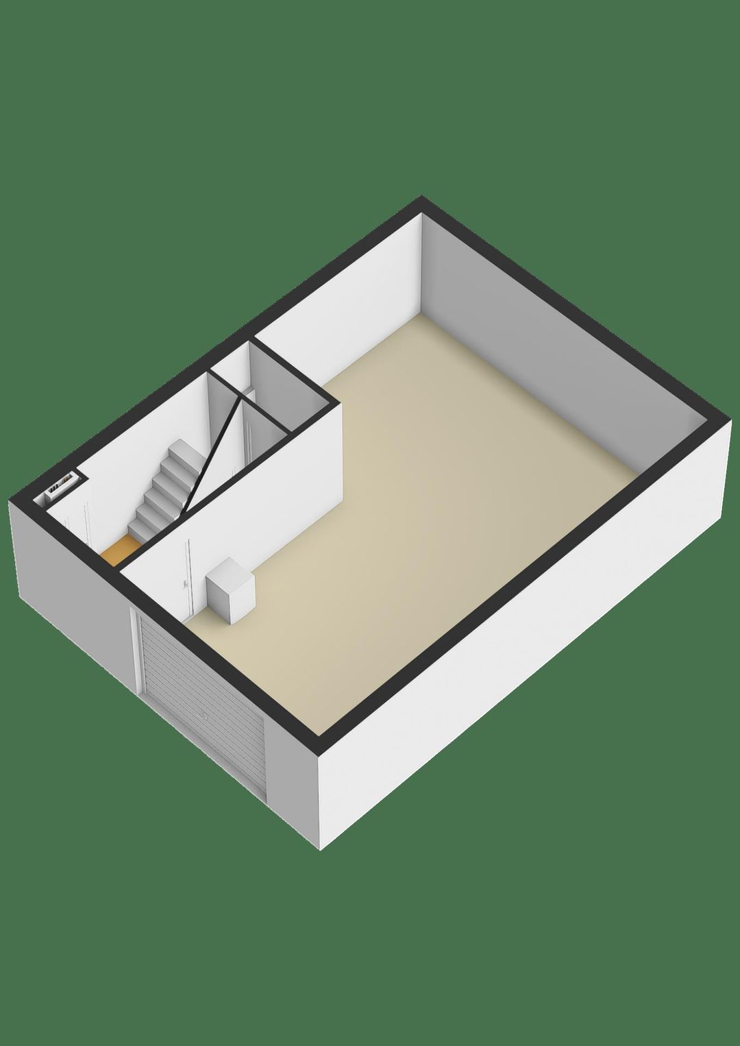Entree, toilet en trapopgang naar de verdieping. De ruimte op de begane grond is uitgevoerd met een overheaddeur en is geschikt als bedrijfs-/opslagruimte. De ruimte voorzien van een betonnen vloer, krachtstroom en een pantry.