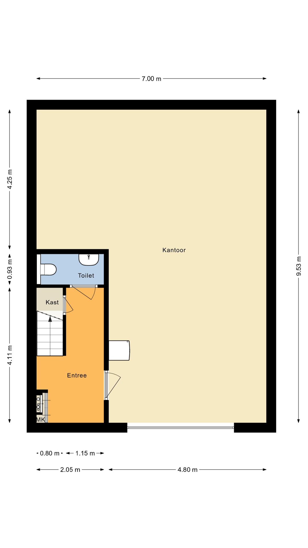 Circa 70 m² BVO kantoorruimte op de verdieping.