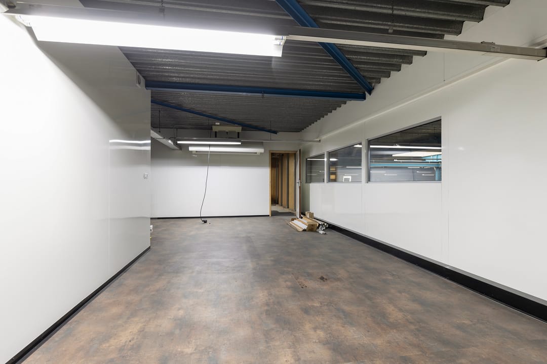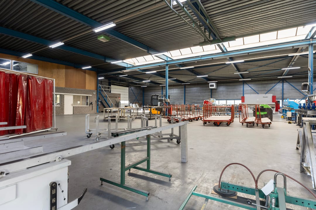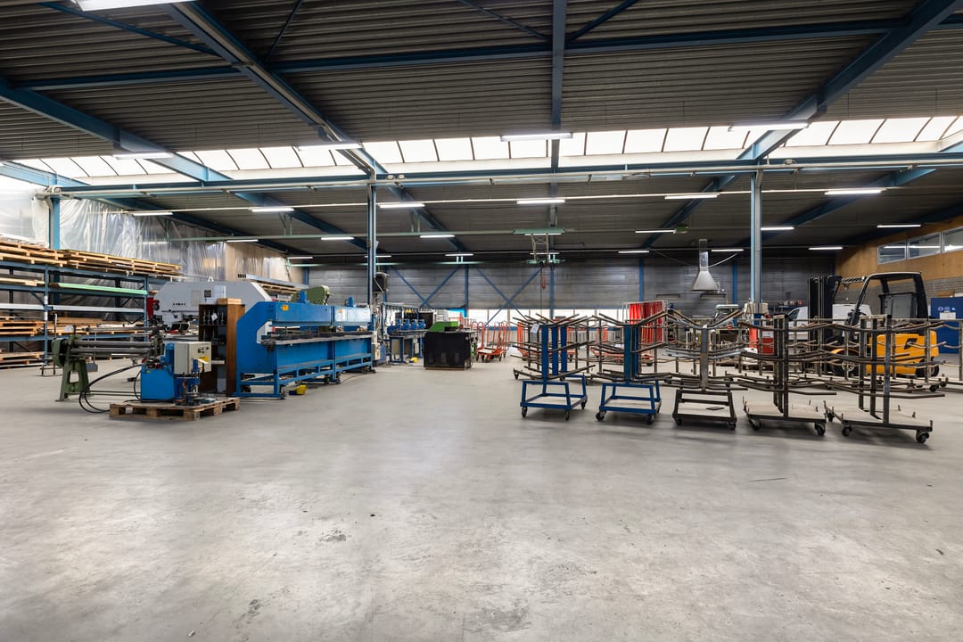 - Lichtstraten, overheaddeuren, krachtstroom, betonvloer, heater, toilet, pantry en te openen ramen