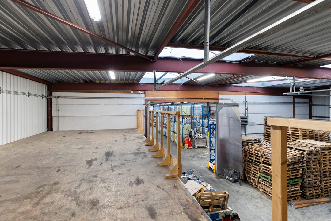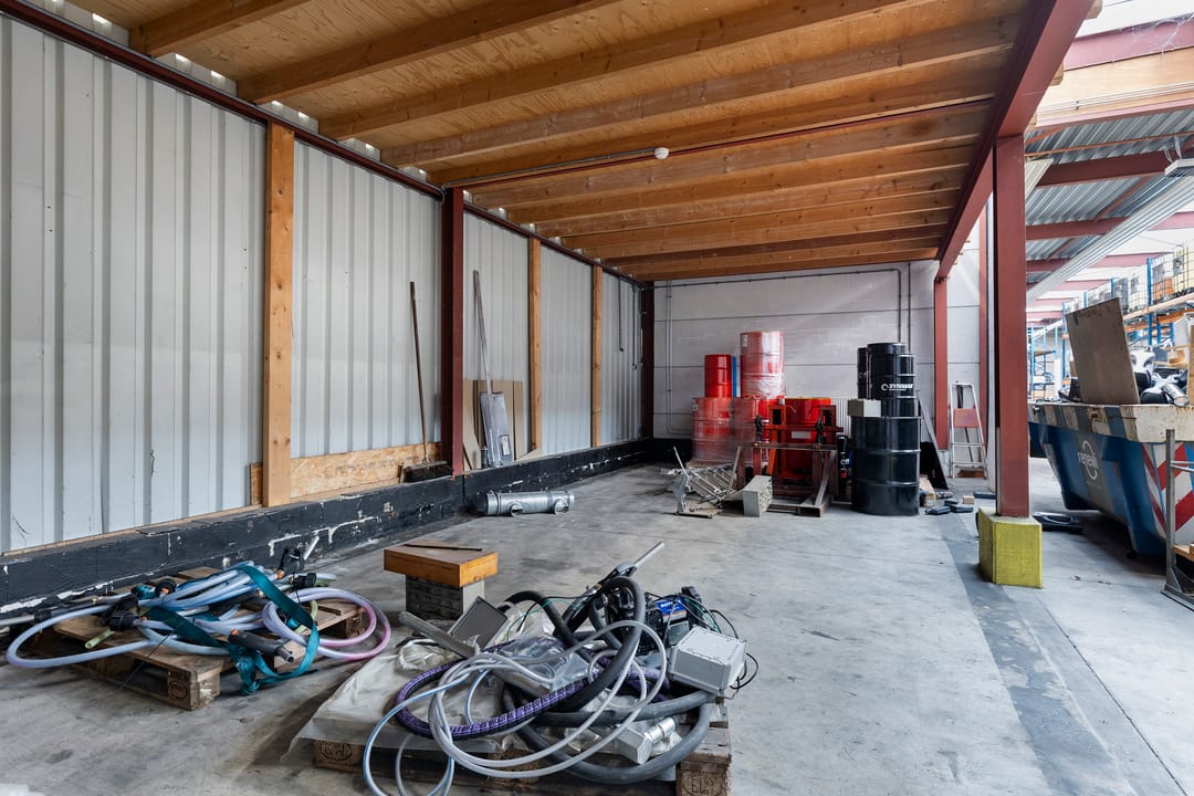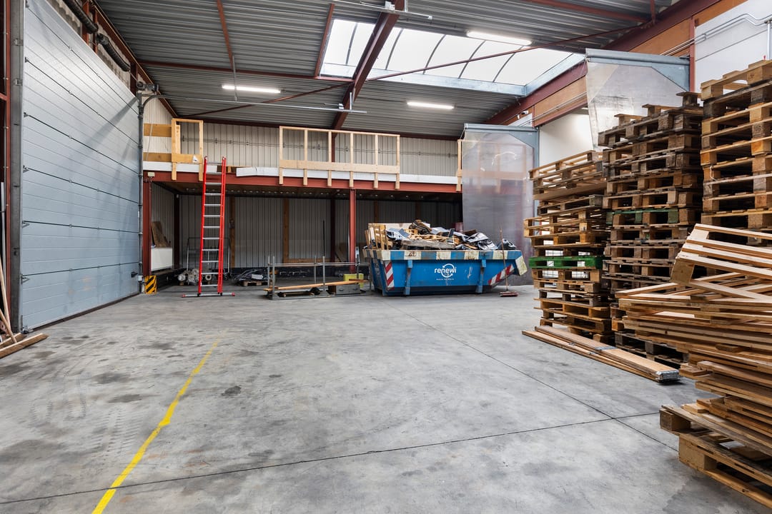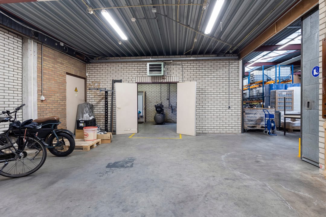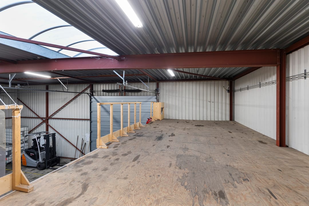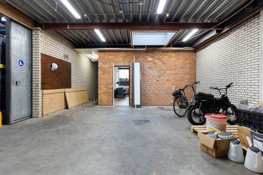 - Lichtstraten, overheaddeuren, krachtstroom, betonvloer, heater, toilet en pantry
