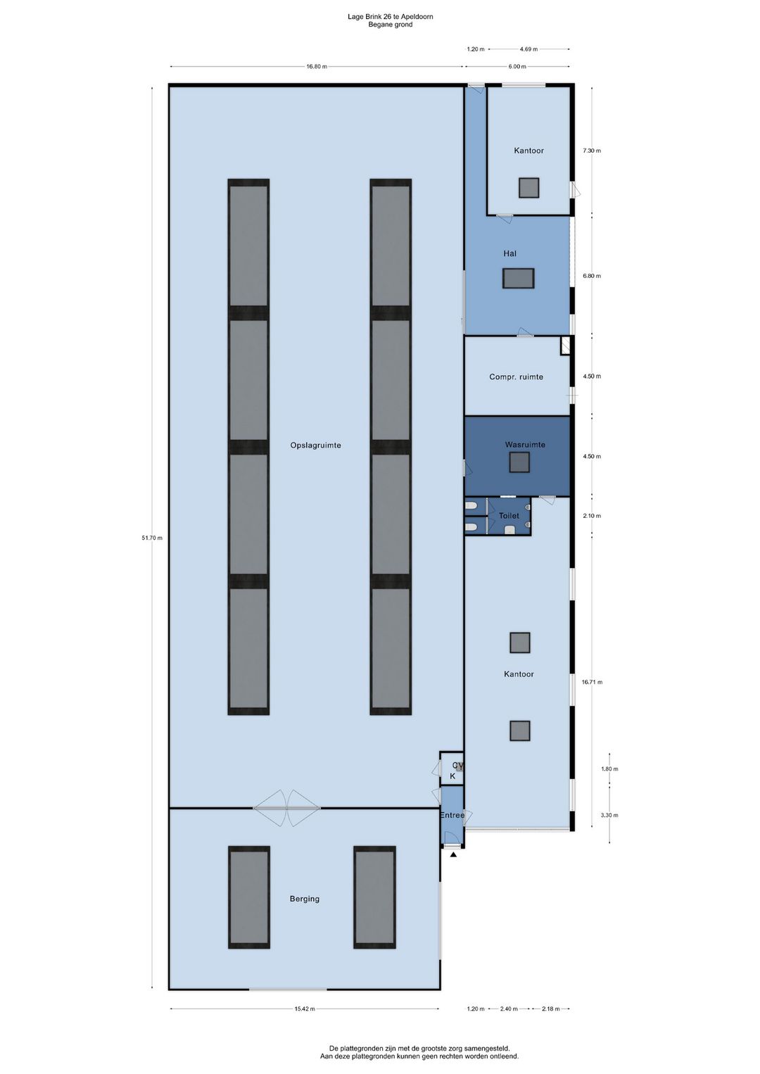 Aan deze objectinformatie kunnen geen rechten worden ontleend en deze informatie kan niet als aanbieding of offerte worden beschouwd maar geldt als uitnodiging om in onderhandeling te treden. Alle informatie is geheel vrijblijvend en uitsluitend voor geadresseerde bestemd. Alle gegevens zijn met zorg samengesteld en uit ons inziens betrouwbare bron afkomstig. Ten aanzien van de juistheid ervan kunnen wij echter geen aansprakelijkheid aanvaarden. Door ons wordt geen aansprakelijkheid aanvaard behoudens voor zover de door ons verplicht afgesloten beroepsaansprakelijkheidsverzekering in voorkomend geval aanspraak op een uitkering geeft.