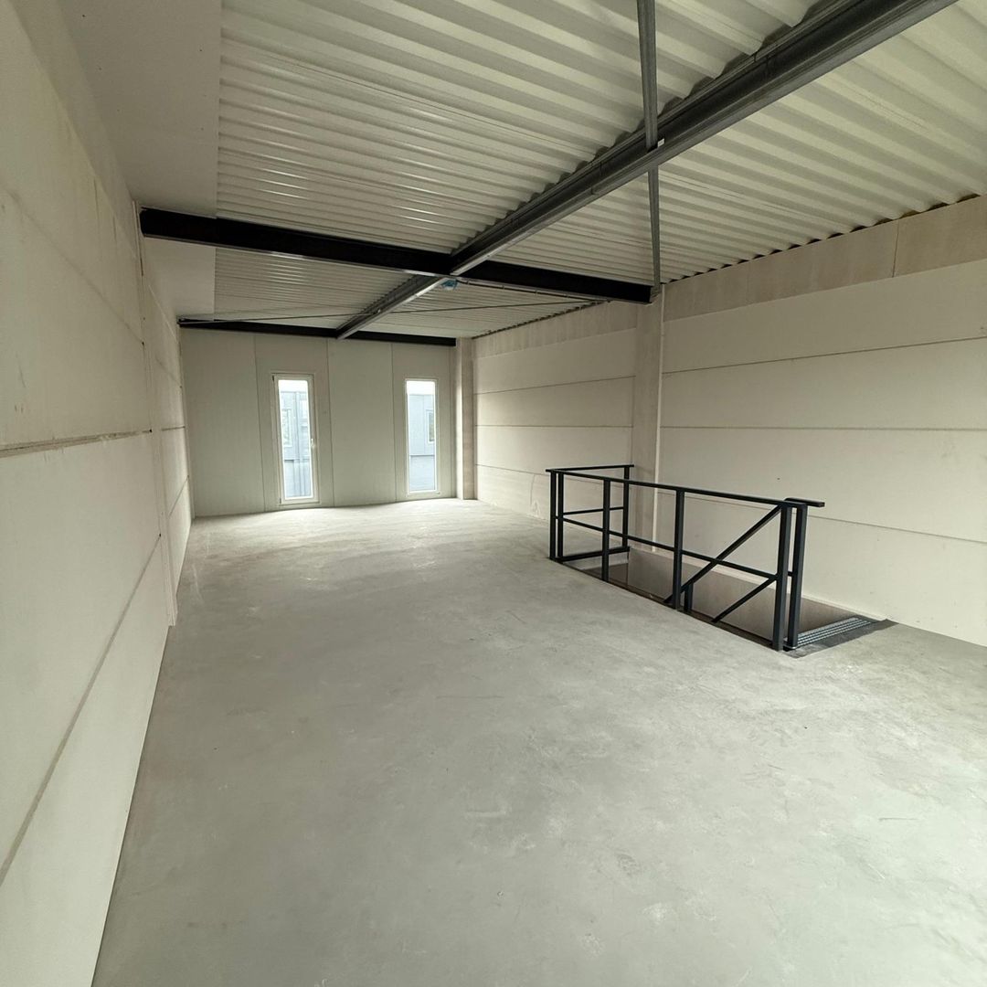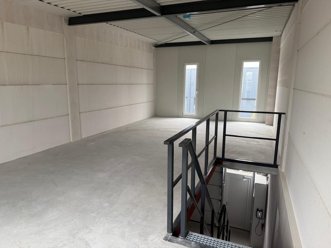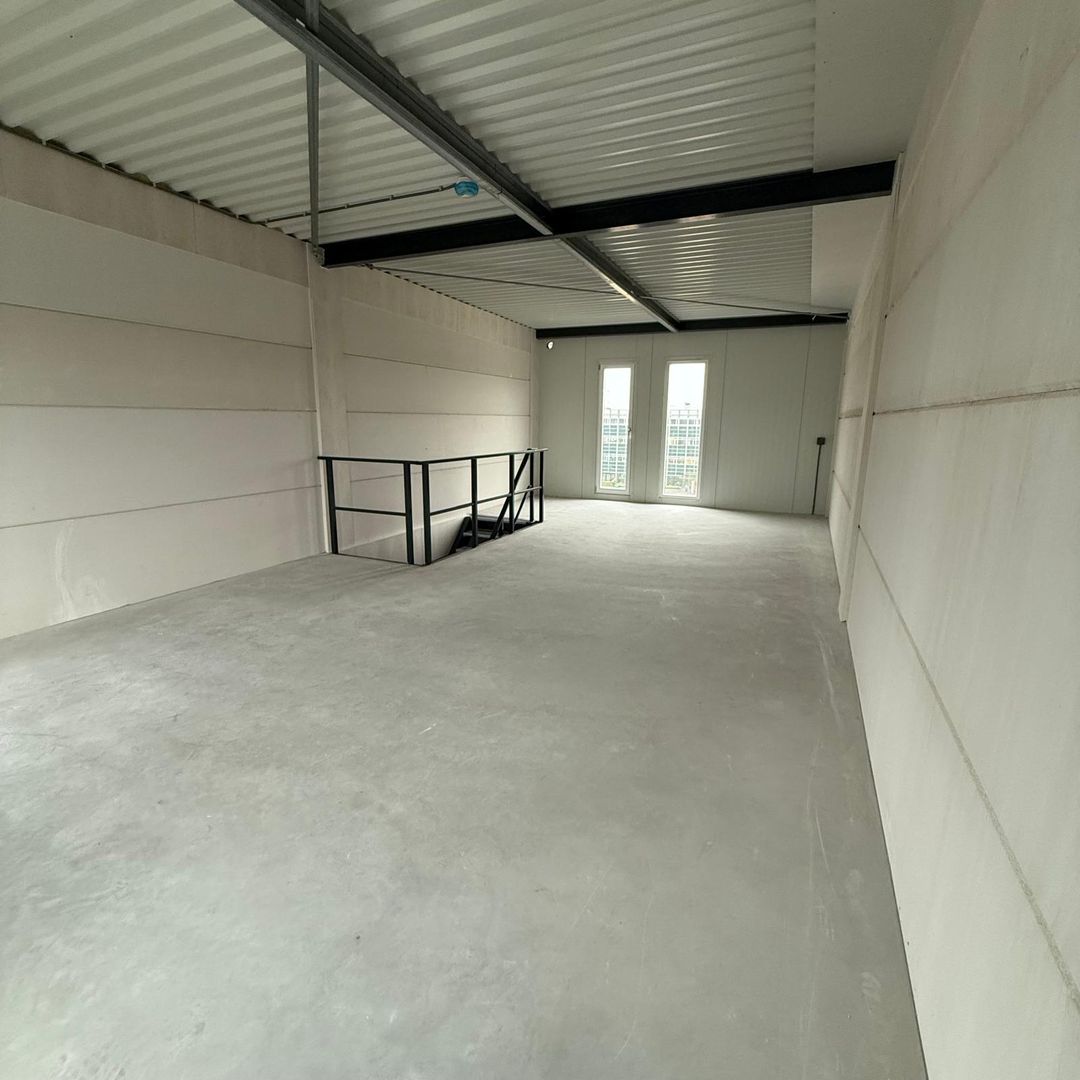 De aangeboden bedrijfsunit bevindt zich op de verdieping en wordt casco opgeleverd. Dit biedt u de vrijheid om de ruimte geheel naar eigen wens in te richten. De unit is bereikbaar via een verwarmde hellingbaan met een doorrijhoogte van 3 meter. De totale vloeroppervlakte bedraagt circa 102 m², verdeeld over circa 51 m² bedrijfsruimte op de begane grond en circa 51 m² ruimte op de eerste verdieping. De begane grond is voorzien van een 4 meter hoge overheaddeur en een separate entreedeur. De vrije hoogte bedraagt 4,6 meter, waardoor de ruimte uitstekend geschikt is voor opslag, werkplaats of andere invulling.