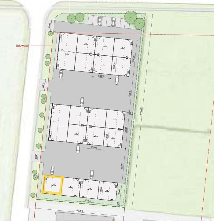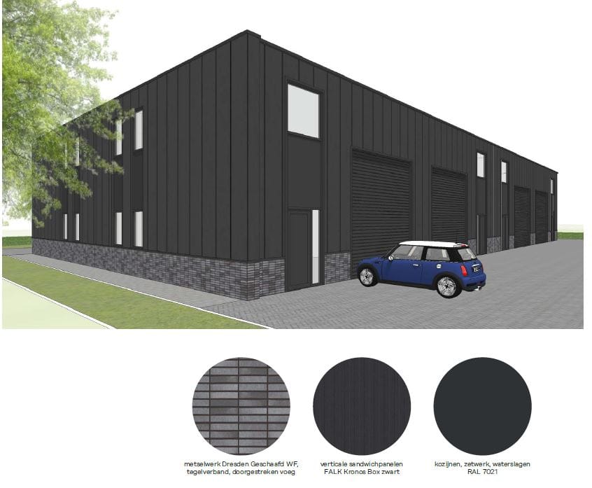 - Mechanische ventilatie, overheaddeuren, krachtstroom, betonvloer, sprinkler, heater, toilet en pantry