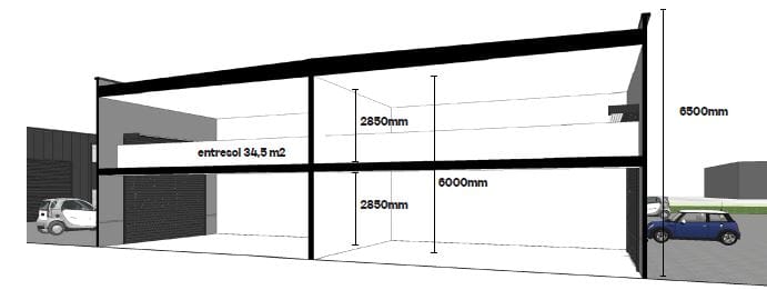 Afmeting: 10x10 meter bruto, entresolvloer van ca. 10 x 4 meter eventueel af te bouwen tot kantoor.