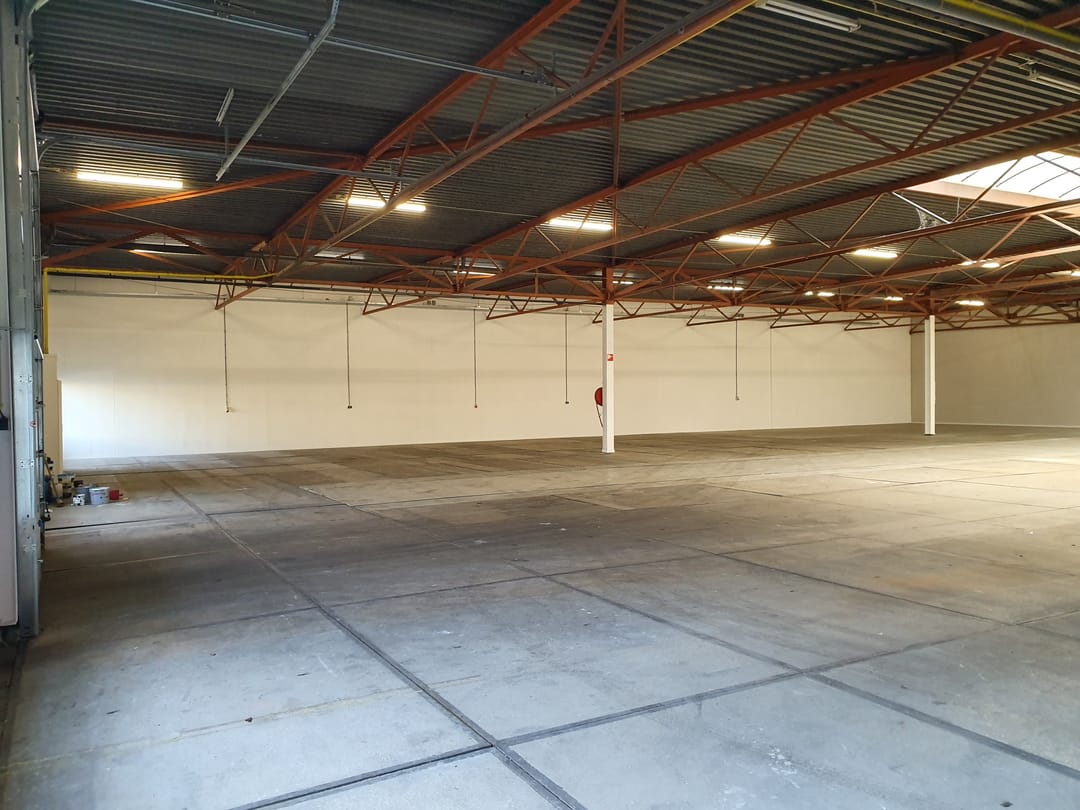 - Lichtstraten, overheaddeuren, betonvloer, heater, toilet en pantry