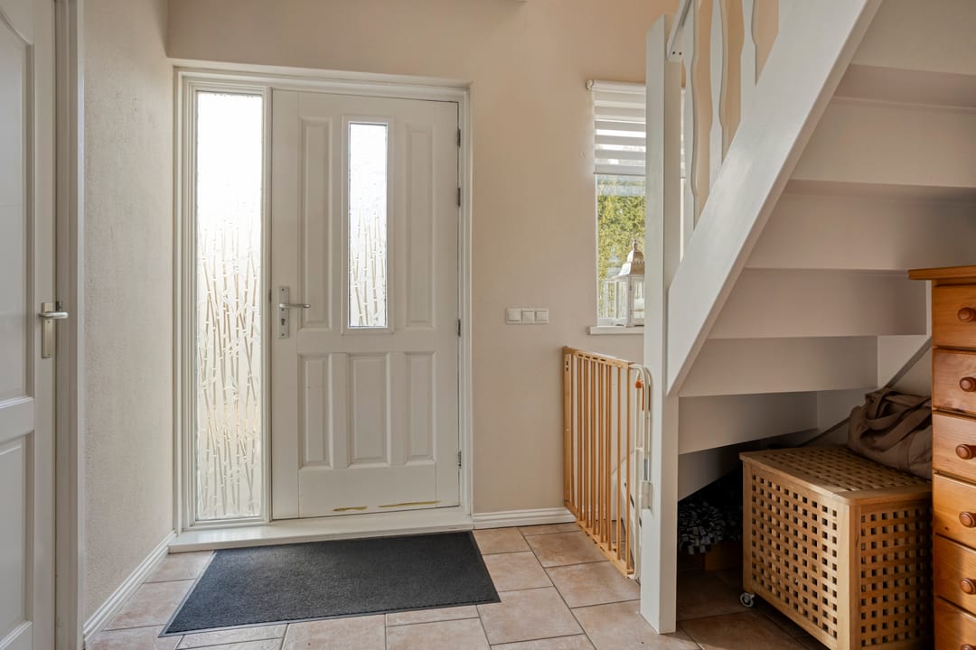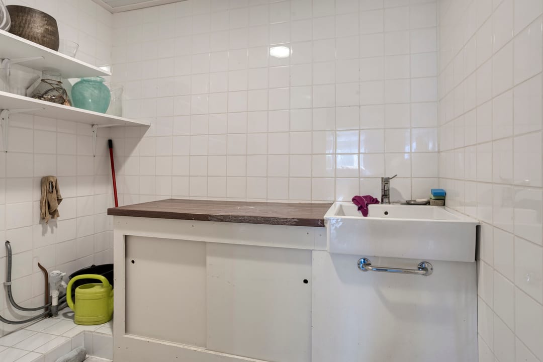 Vanuit de hal in de bedrijfsruimte is er een vaste trap naar de bergzolder.