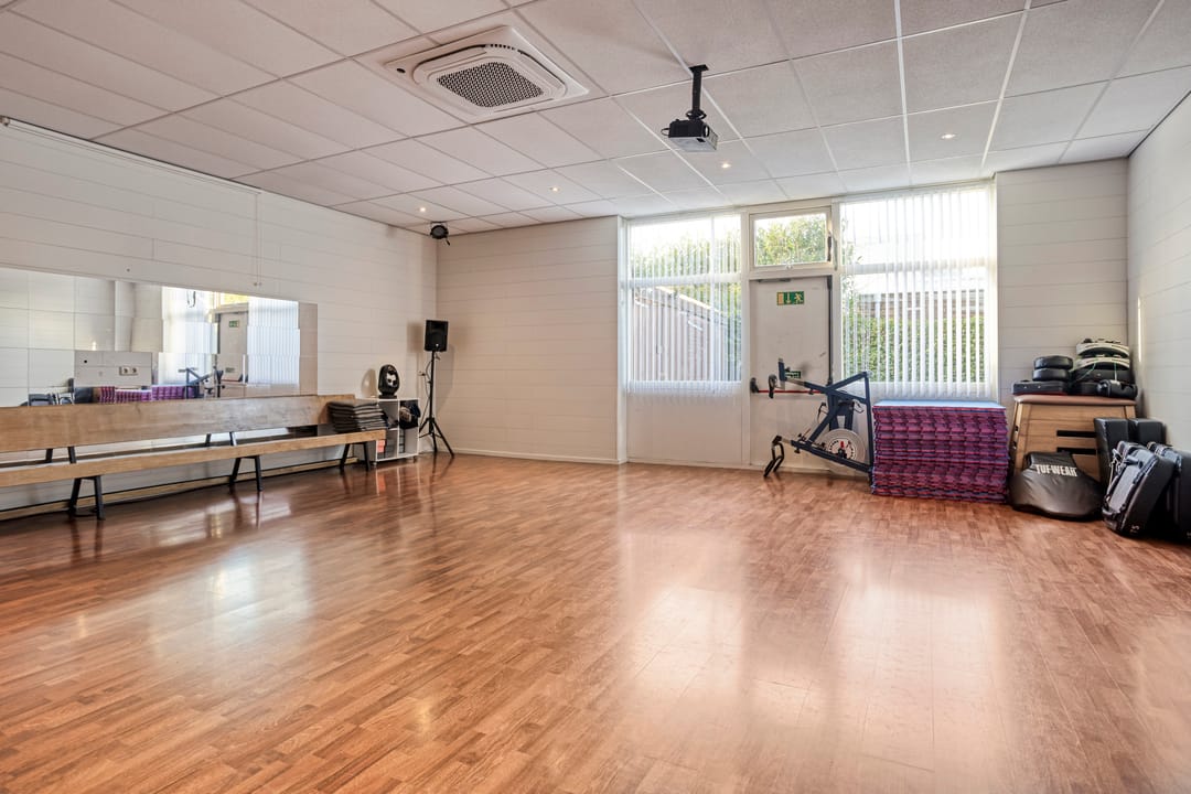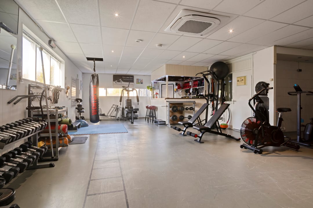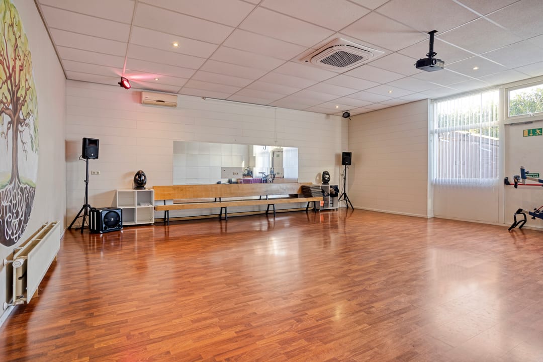 - Airconditioning, overheaddeuren, krachtstroom, betonvloer, heater, toilet, pantry en te openen ramen